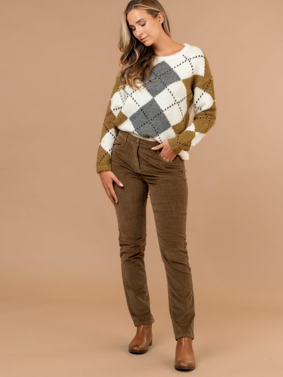 Nouveau shopping_basket Ajouter au panier Pull motif losanges 27,99 € 57% ACRYLIQUE 23% POLYESTER 11% LAINE 8% POLYAMIDE 1% ELASTHANNE