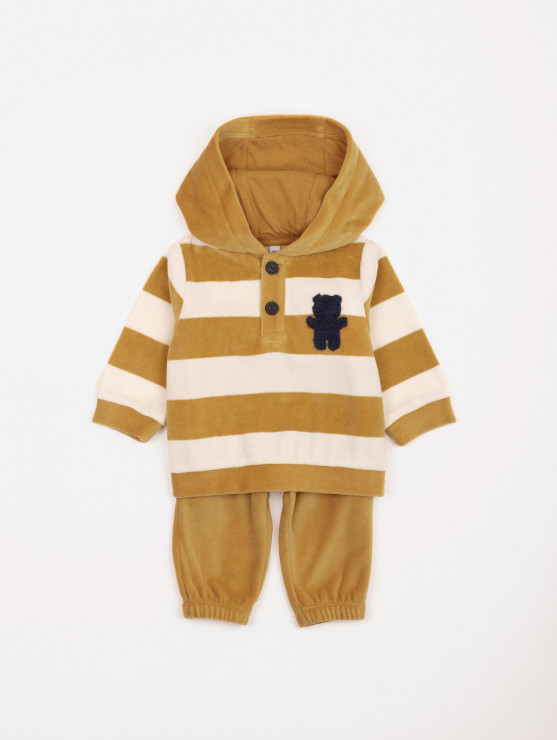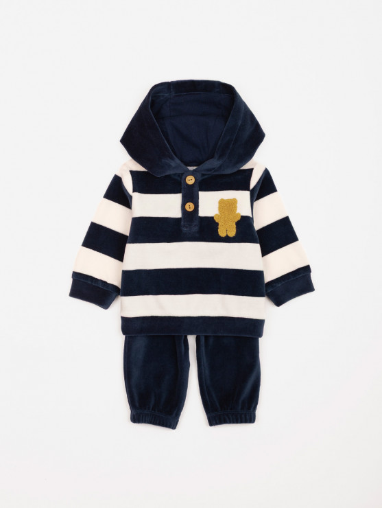 Nouveau shopping_basket Ajouter au panier Ensemble sweat velours rayé ourson 16,99 € SWEAT 77% COTON 23% POLYESTER Doublure: 100% COTON PANTALON 77% COTON 23% POLYESTER