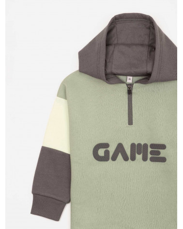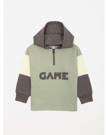Tendance et graphique, ce sweat à capuche tricolore "Game" pour garçon est un indispensable. On aime son col zippé, sa capuche doublée jersey et son texte fantaisie "Game" en relief très original ! Existe en espace et gris foncé.