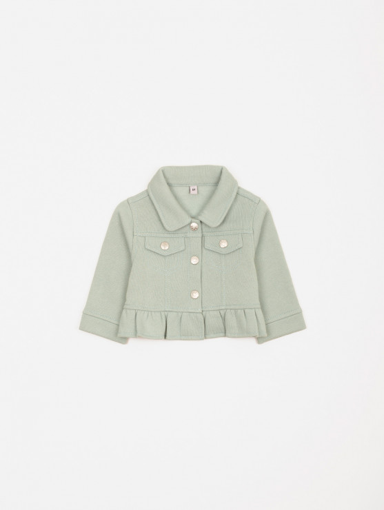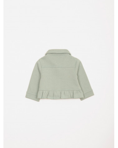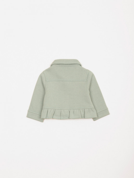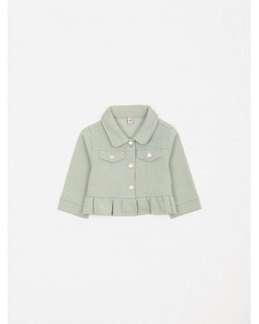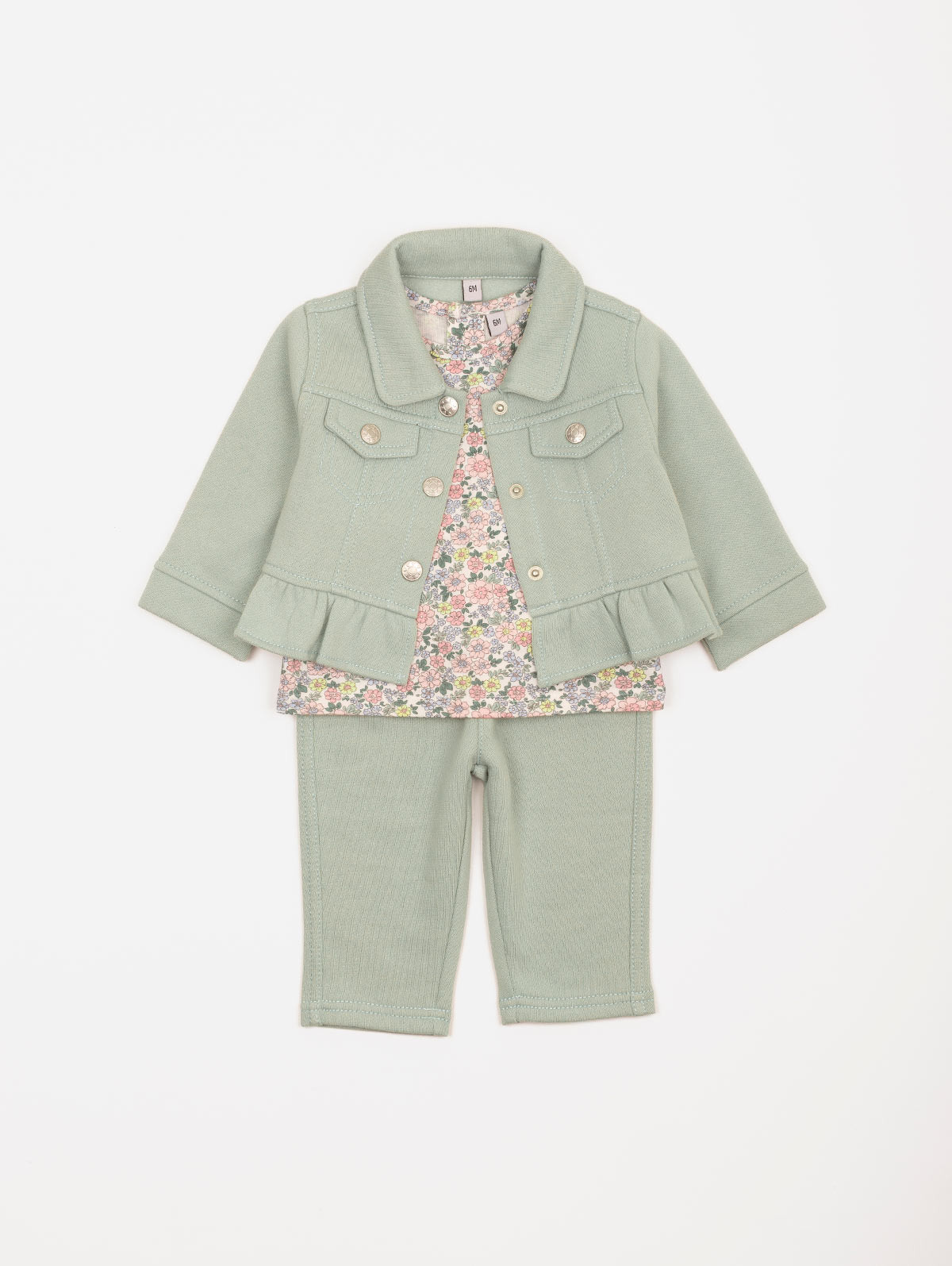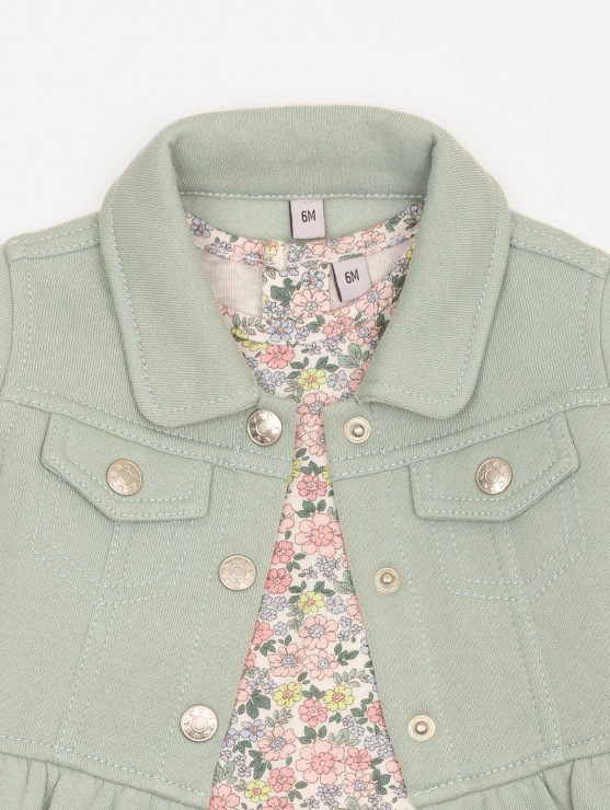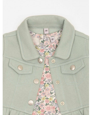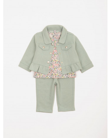 Frais et tout en douceur, cet ensemble 3 pièces pour bébé-fille est idéal pour la saison ! On aime sa veste en molleton avec fausses poches plaquées, boutons pression et volants, son tee-shirt à l'imprimé fleuri et au dos boutonné ainsi que son pantalon à la ceinture élastiquée. Une jolie tenue parfaite pour les premiers rayons de soleil ! Existe en aloe vera et pensée.