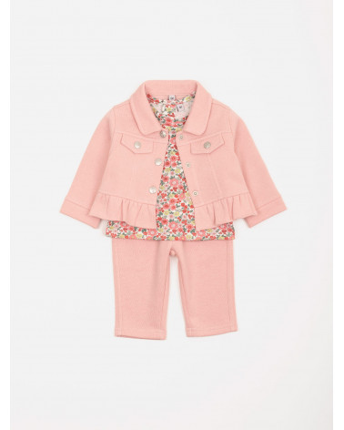 Ensemble 3 pièces fleurs veste molleton