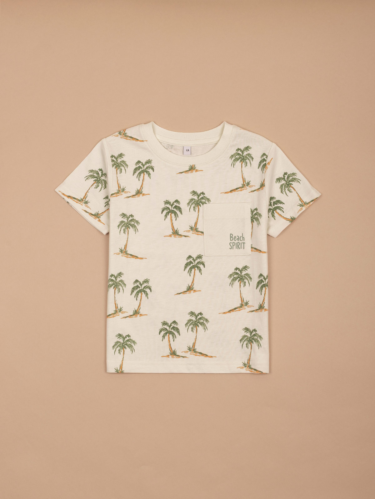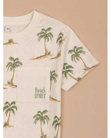 Une envie de vacances s'empare de nous en voyant ce tee-shirt pour garçon à l'imprimé palmiers ! Le plus : sa jolie poche plaquée à l'inscription "Beach Spirit" ! Existe en châtaigne et salicorne.