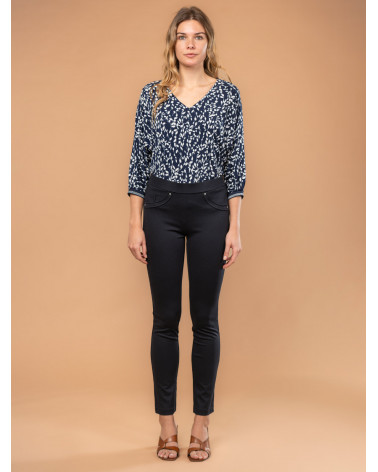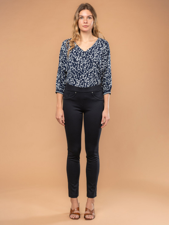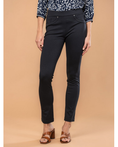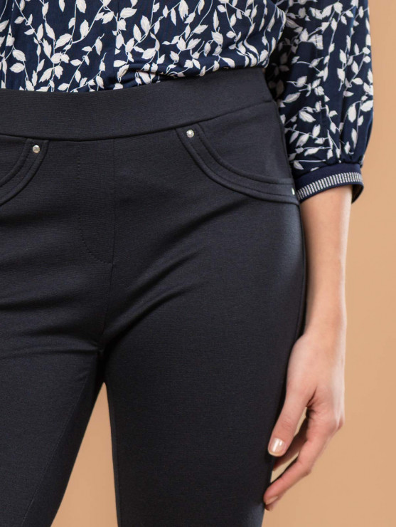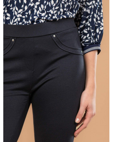 Sobre et intemporel, ce jegging pour femme en tissu milano avec fausses poches et clous fantaisie est notre indispensable ! Les plus qui font la différence ? Son tissu extensible et sa ceinture élastiquée, 100% confort ! Existe en marine et noir. Longueur totale pour une taille 38 : 100 cm environ. Notre mannequin mesure 1,75m et porte une taille 38.