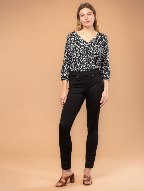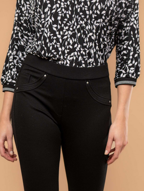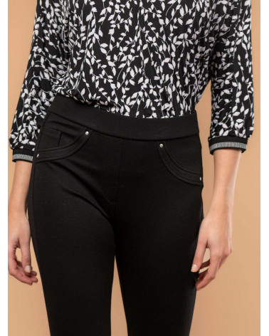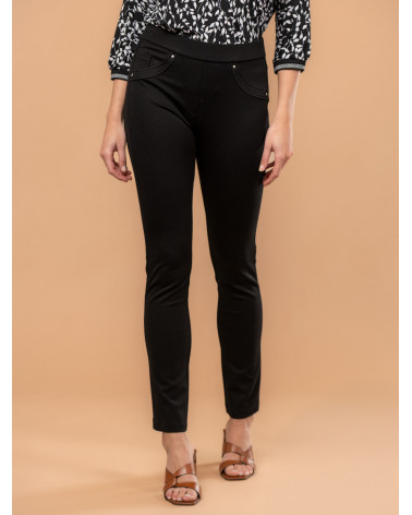 Sobre et intemporel, ce jegging pour femme en tissu milano avec fausses poches et clous fantaisie est notre indispensable ! Les plus qui font la différence ? Son tissu extensible et sa ceinture élastiquée, 100% confort ! Existe en marine et noir. Longueur totale pour une taille 38 : 100 cm environ. Notre mannequin mesure 1,75m et porte une taille 38.