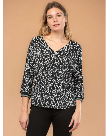 Blouse imprimé feuillage col V