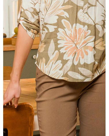 Très agréable à porter, ce pantalon uni pour femme en bengaline conjugue confort et élégance. Très facile à assortir, il se révèle être un précieux allié au quotidien. À la fois chic et décontracté, ce pantalon stretch et quasi-infroissable deviendra vite une pièce phare de votre dressing. Coupe droite, taille avec bouton et fermeture éclair, passants pour ceinture et deux fausses poches à l'avant avec clous fantaisie. Existe en dune et jungle. Longueur totale pour une taille 38 : 104 cm environ. Notre mannequin mesure 1,75m et porte une taille 38.