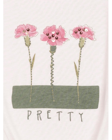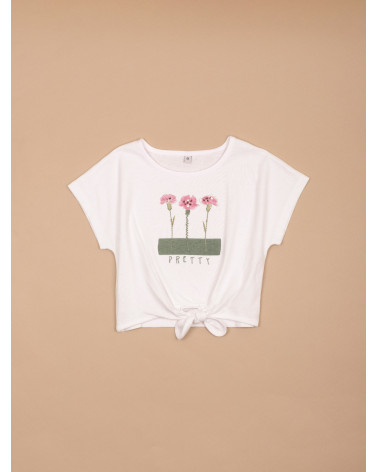 Ce tee-shirt pour fille aux fleurs fantaisie avec bas noué est notre indispensable ! Une pièce idéale pour donner du pep's à un jean ou à un pantalon uni. Existe en dune et kaki.