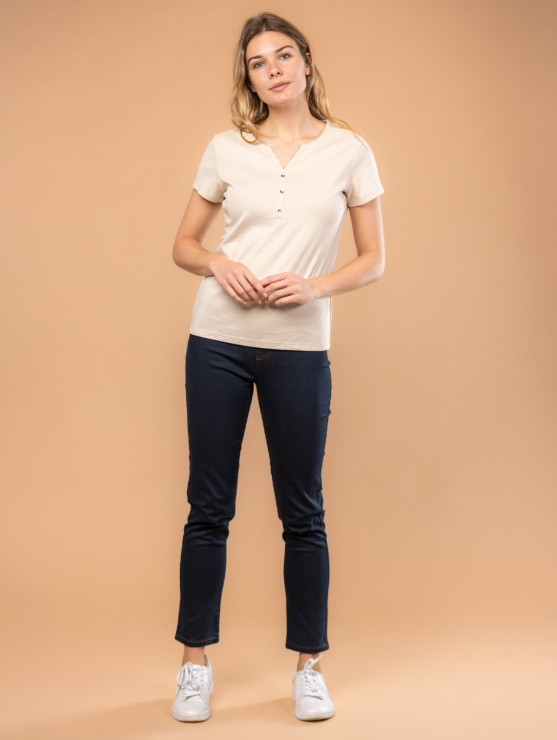 Sobre et intemporel, ce top pour femme au col tunisien et en maille côtelée est un essentiel sur lequel on aime se reposer. Tant avec vos bas unis qu'imprimés, c'est la pièce parfaite pour composer des looks efficaces au quotidien ! Existe en avoine, gaspacho, marine et noir. Longueur totale pour une taille 1 : 62 cm environ. Notre mannequin mesure 1,75m et porte une taille 1.
