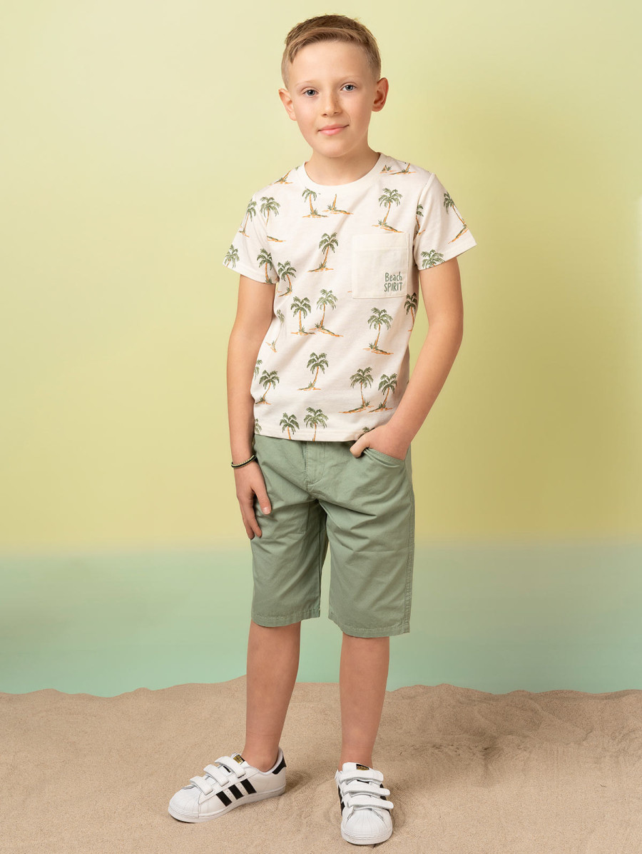 Très estival, ce bermuda uni pour garçon avec sa ceinture à l'imprimé palmiers est un véritable essentiel ! Doté de deux vraies poches à l'avant et d'une fermeture zippée avec bouton, il allie efficacement style et confort. Le plus : une jolie ceinture fantaisie pour donner du pep's aux tenues de votre enfant. Existe en châtaigne et salicorne.
