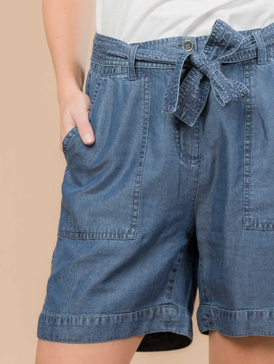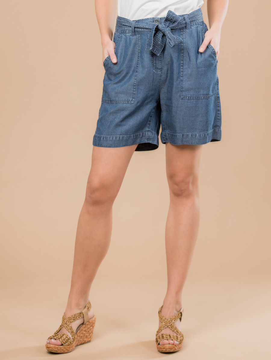 Short effet denim ceinture nouée