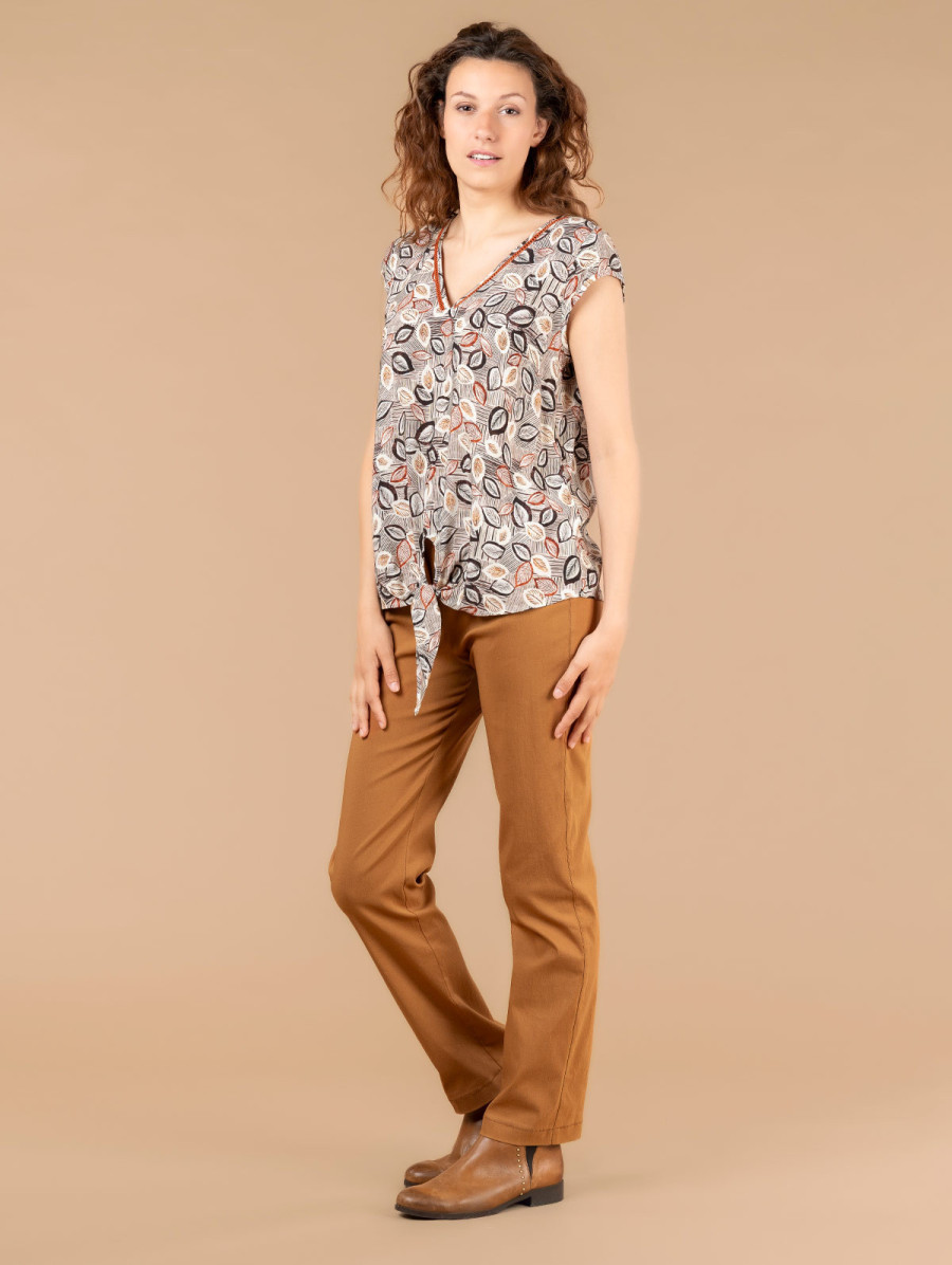 Top imprimé feuillage bas noué