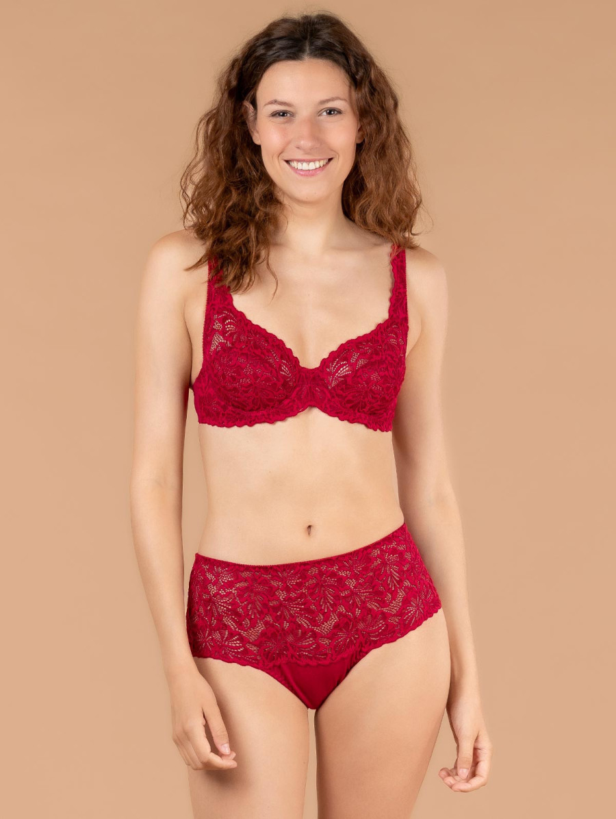 Osez une fantaisie délicate et élégante avec cette culotte pour femme avec bande en dentelle au motif de grandes feuilles. Très confortable grâce à son alliance de microfibre et de dentelle, elle souligne joliment vos hanches pour que vous vous sentiez belle et féminine au quotidien. Existe en bordeaux, marine et noir.