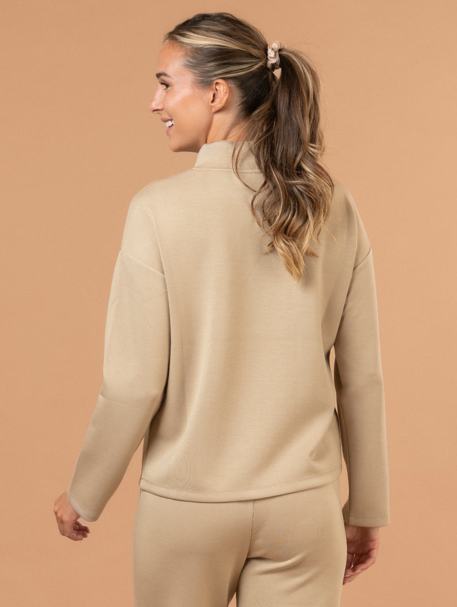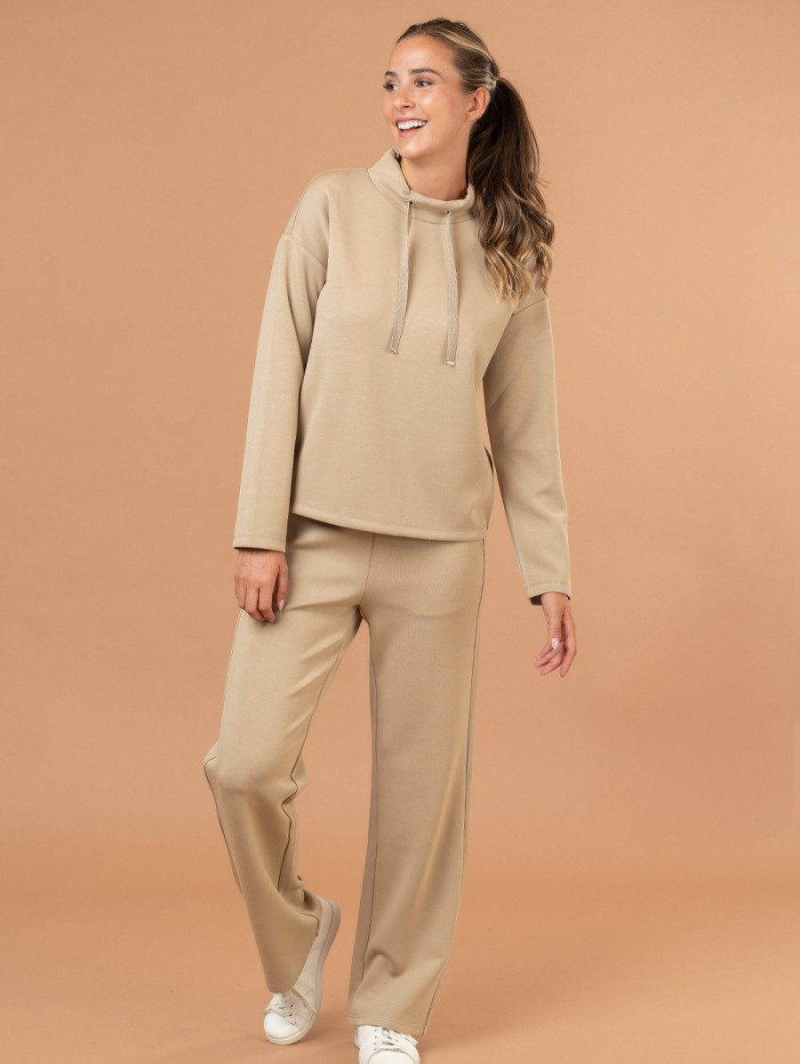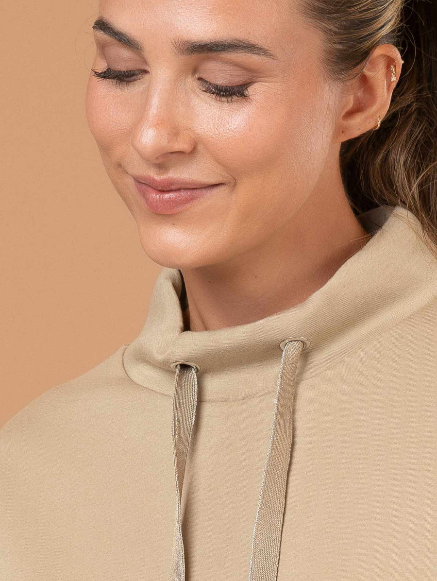 Passez en mode sportswear avec ce sweat pour femme tout confort en maille souple. Conçu dans un tissu très agréable à porter, vous ne pourrez bientôt plus vous en passer ! Existe en beige et marine. Longueur totale pour une taille 1 : 60 cm environ. Notre mannequin mesure 1,75m et porte une taille 1.