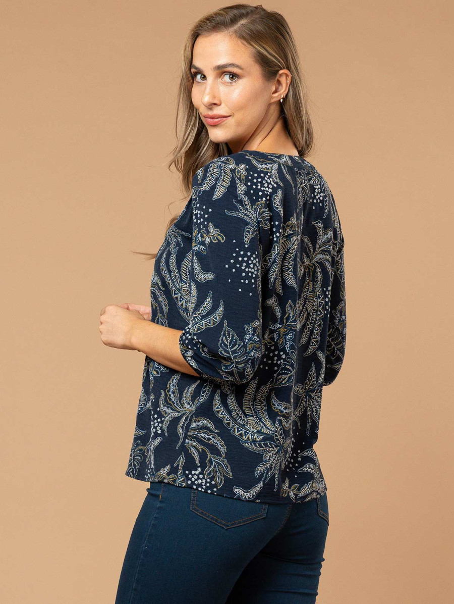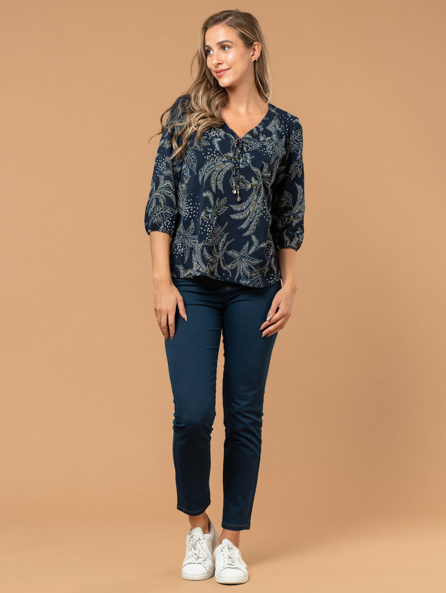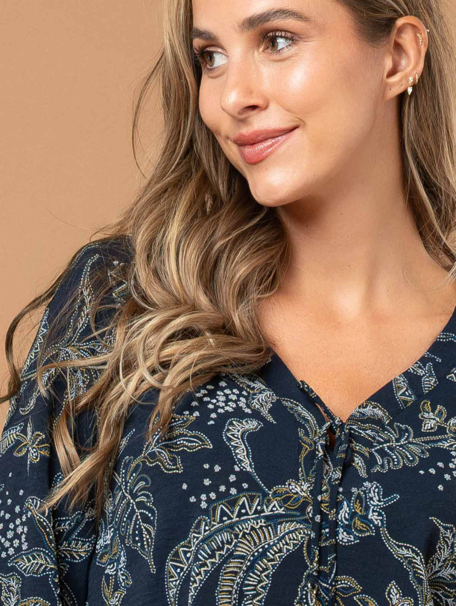 Blouse imprimé feuillage col bijou