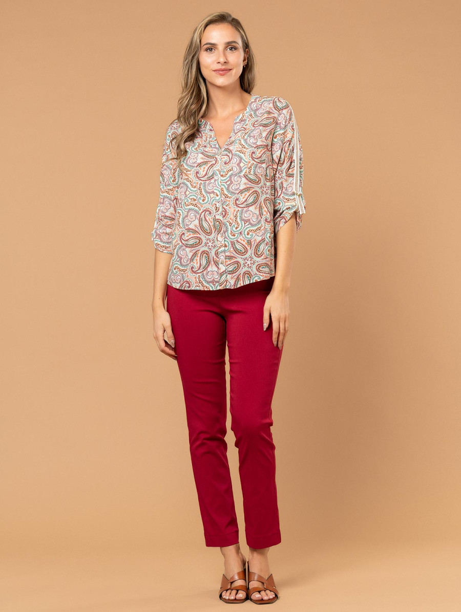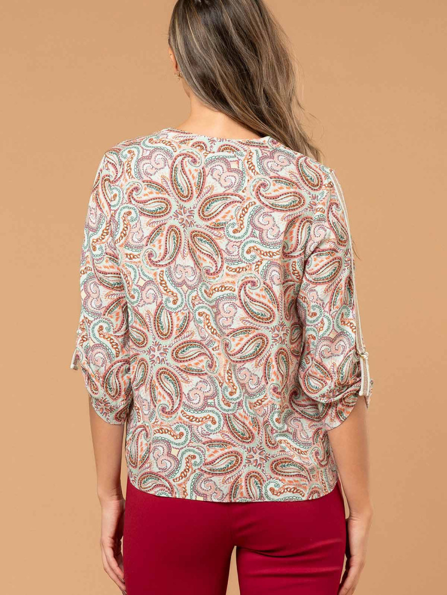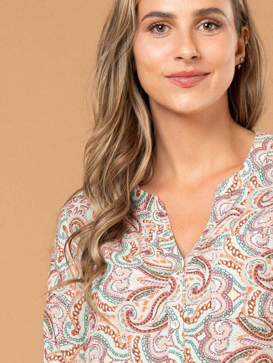 Aussi originale que confortable, cette chemise pour femme à l'imprimé cachemire est idéale pour la saison ! On adore ses boutons à l'effet nacré, sa poche plaquée et ses jolis galons. Existe en bleu et vert. Longueur totale pour une taille 38 : 62 cm environ. Notre mannequin mesure 1,75m et porte une taille 38.