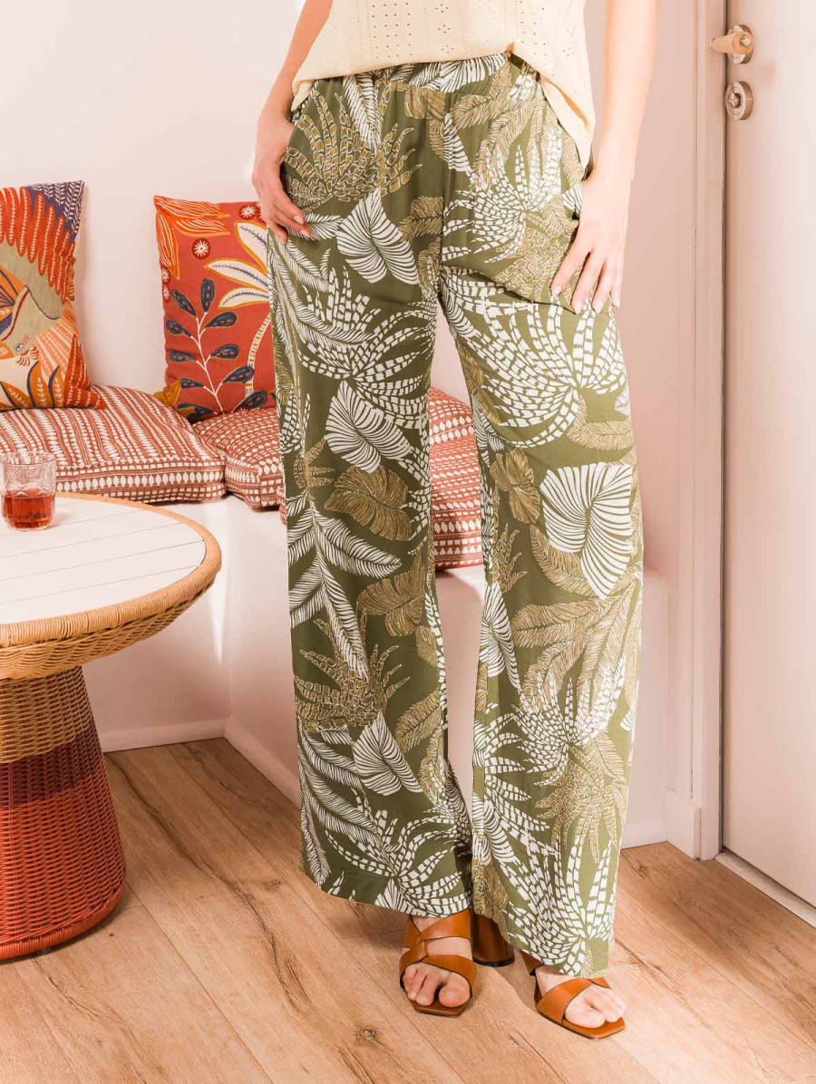 Pantalon fluide imprimé feuillage