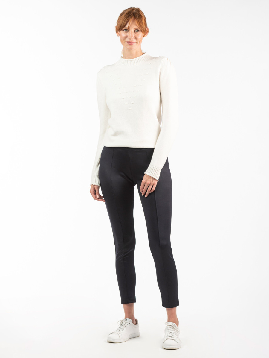 Découvrez le jegging plébiscité par nos clientes en recherche de confort et de look ! Sobre et facile à assortir, ce jegging scuba uni à la large ceinture élastiquée avec surpiqûres sur le devant est tellement agréable qu'on ne peut plus s'en passer ! Existe en marine et noir. Longueur totale pour une taille 38/40 : 94 cm environ. Notre mannequin mesure 1,79m et porte une taille 38/40.