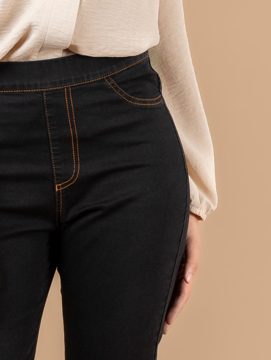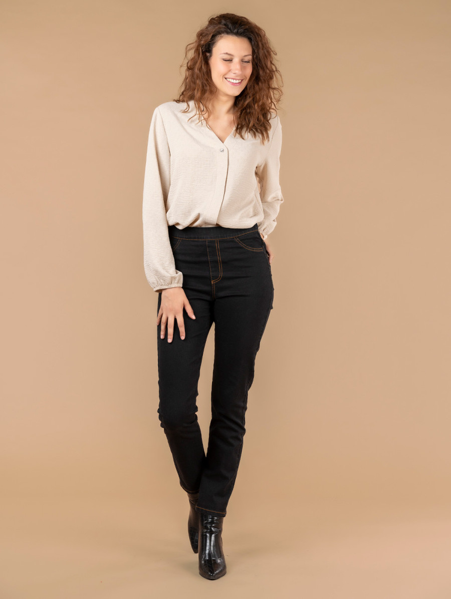 L'apparence d'un jean, le confort d'un legging... Ce jegging pour femme à l'effet denim a décidément tout pour lui. Simple et confortable, ce jegging se suffit à lui même pour compléter n'importe quelle tenue. Disposant de deux véritables poches à l'arrière et d'une ceinture élastiquée en plus de ses surpiqûres qui créent l'illusion parfaite d'un jean, ce jegging se révèlera rapidement mieux que le vrai. Existe en black, brut et stone. Longueur totale pour une taille 38 : 100 cm environ. Notre mannequin mesure 1,75m et porte une taille 38.