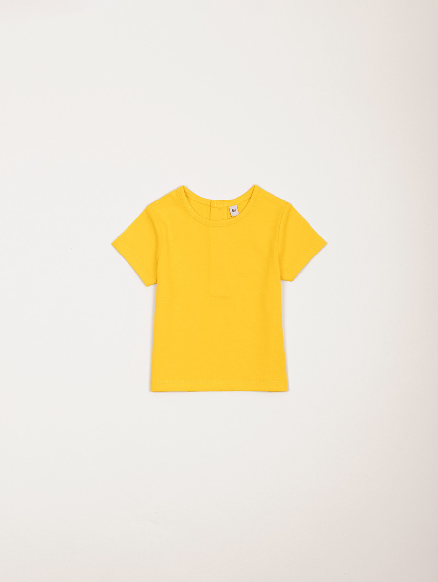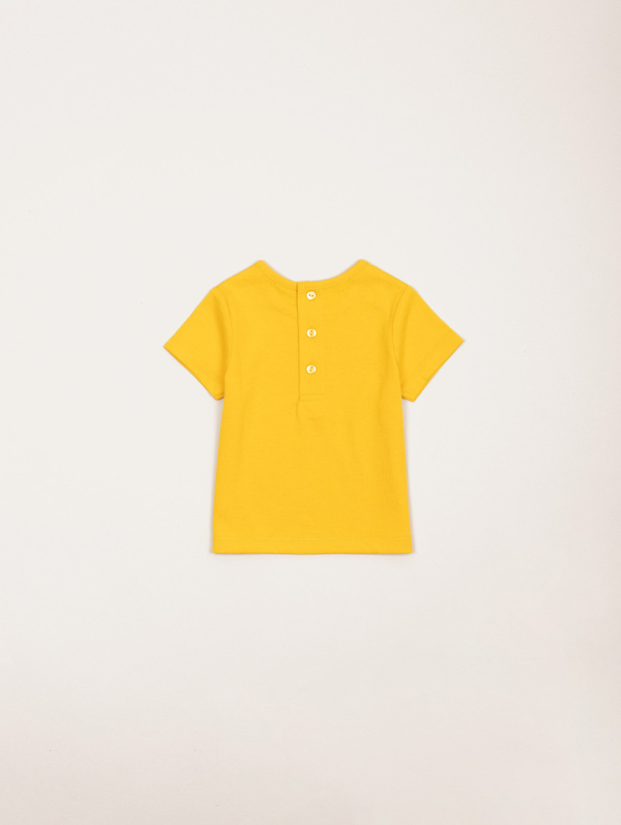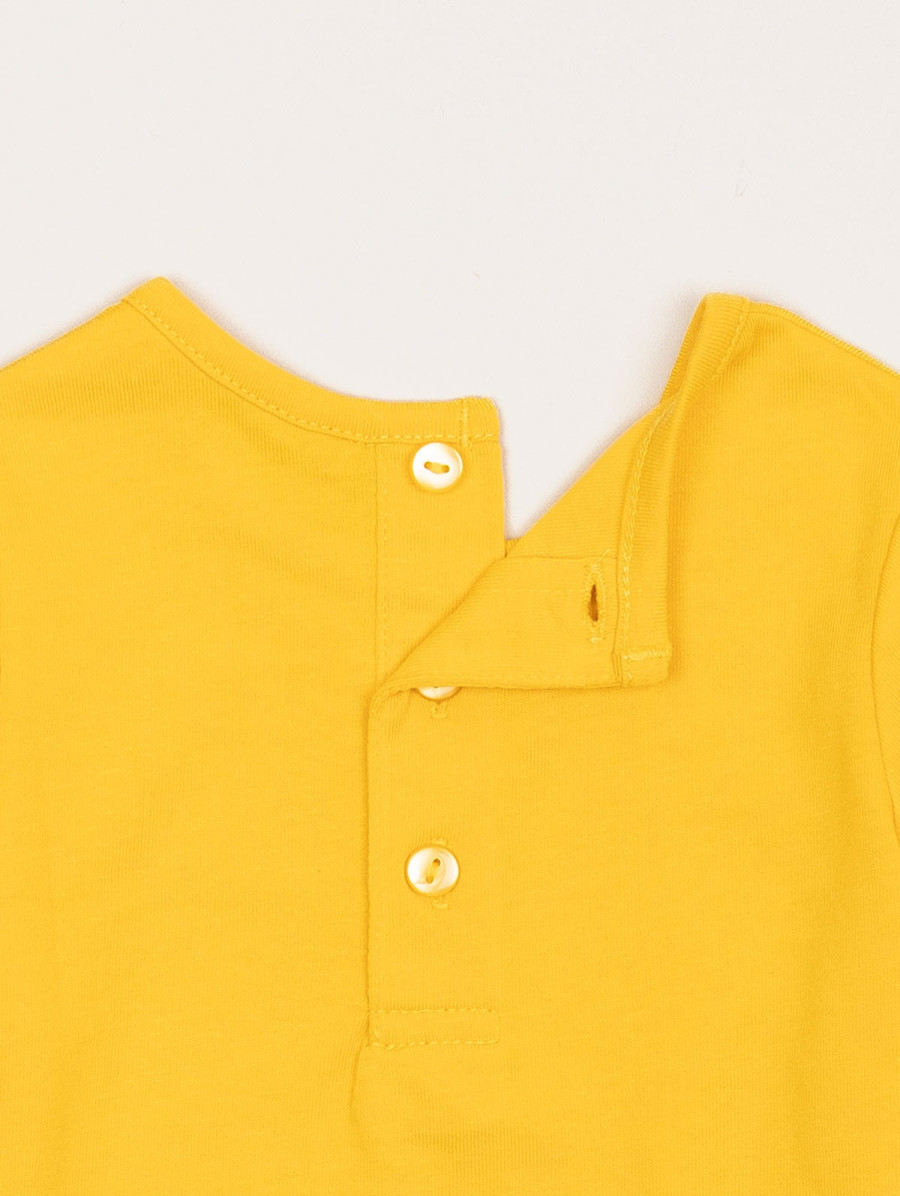 Vitaminez votre été avec cet ensemble pour bébé-fille composé d'un tee-shirt uni au dos boutonné, d'une robe-salopette au thème fruits et d'un short bloomer élastiqué. Des boutons pressions, présents sur la robe-salopette, facilitent l'habillement de votre petite princesse ! Existe en colza et pastèque.