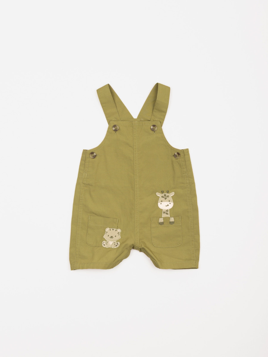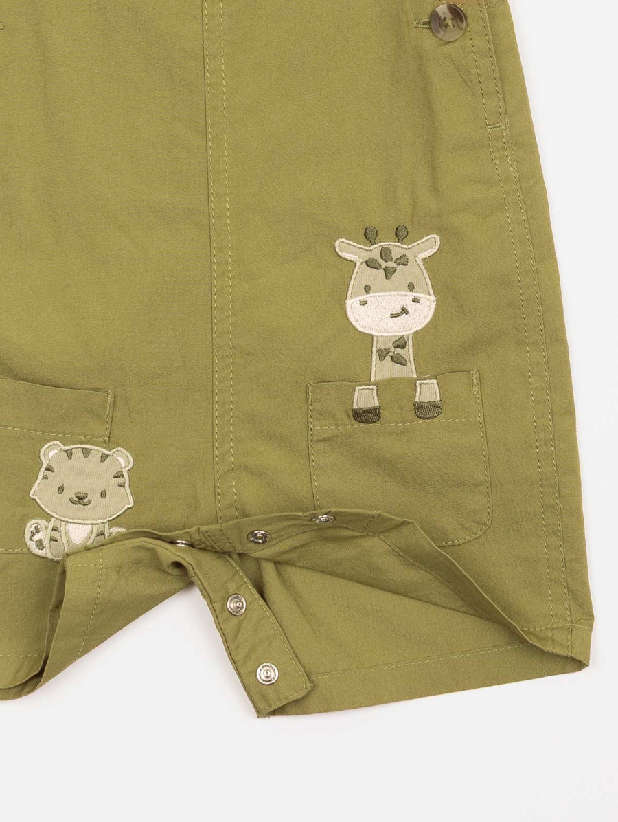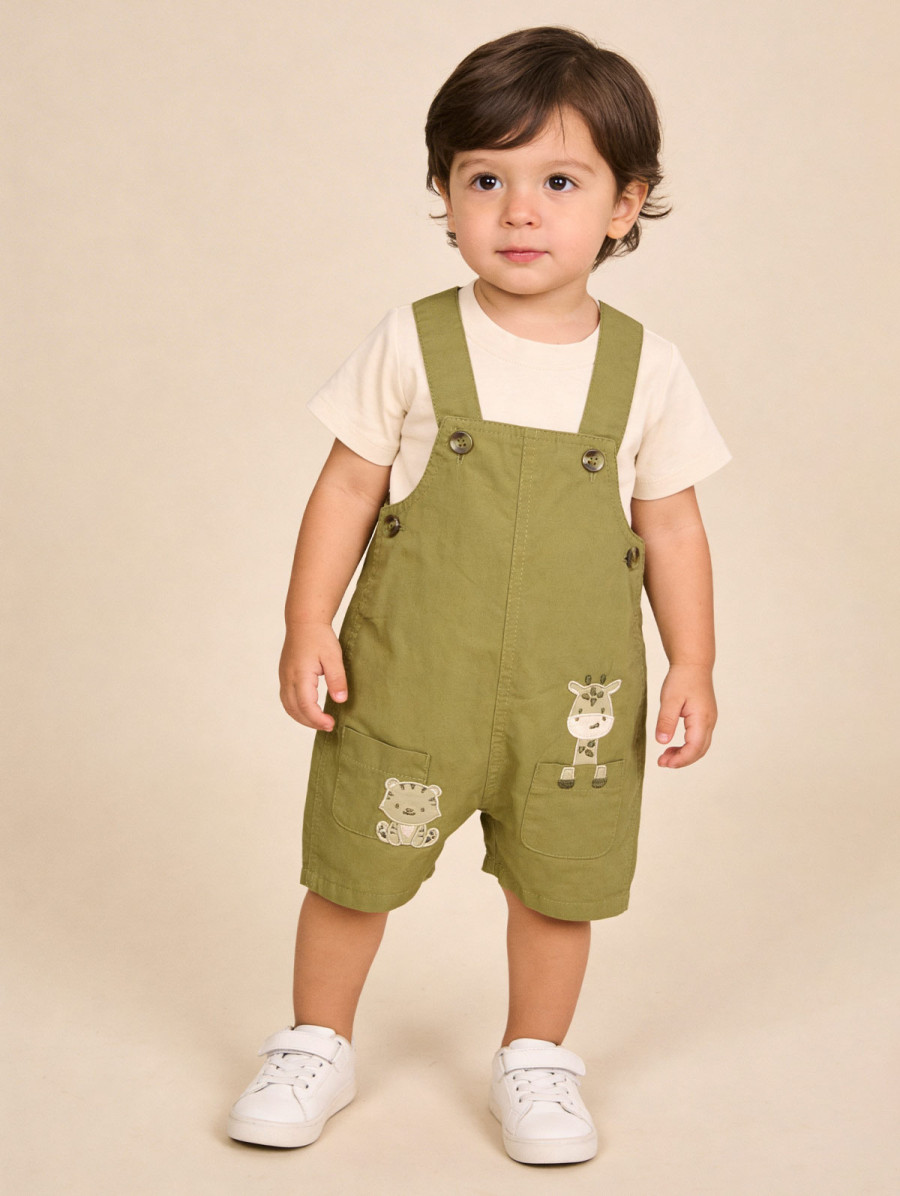 Adorable et pratique, cet ensemble bébé-garçon se compose d’un tee-shirt uni au dos boutonné et d’une salopette au thème animaux. On craque pour ses deux petites poches plaquées décorées d’animaux en empiècements et broderies, girafe et tigre, 100% mignons ! Grâce à ses finitions boutonnées et ses pressions à l’entrejambe, l’habillage devient simple et confortable au quotidien. Existe en sirocco et varech.