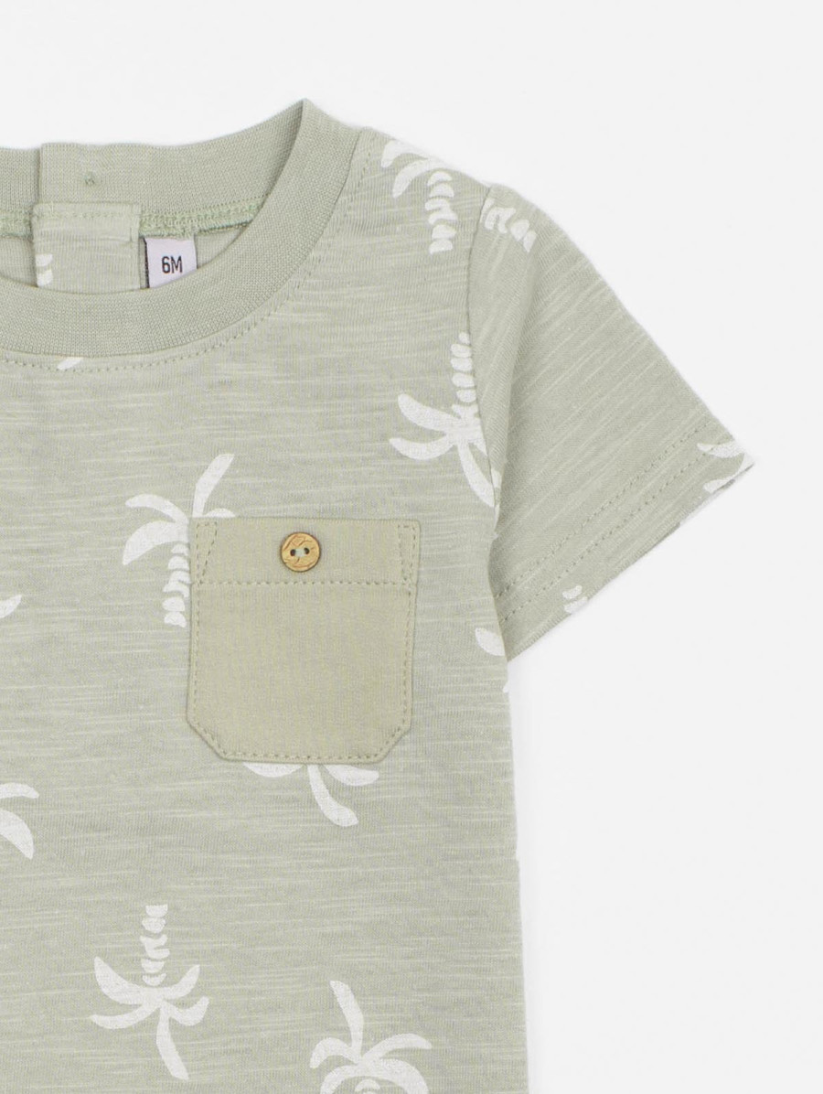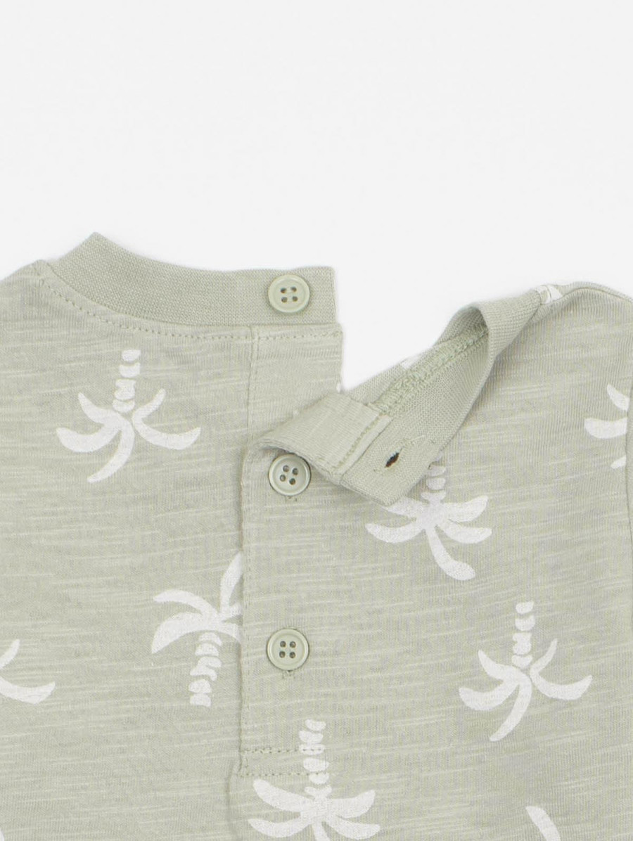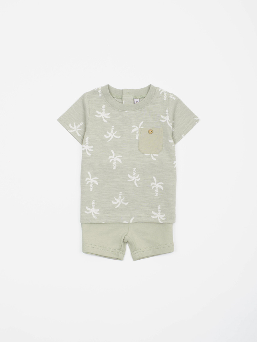 Cap sur l’été avec cet ensemble bébé garçon au style décontracté ! Le tee-shirt en jersey chiné à l’imprimé palmiers, doté d'une poche plaquée et d'un dos boutonné, s’accorde parfaitement avec le short en molleton à taille élastiquée. Un duo pratique et confortable, idéal pour profiter des beaux jours ! Existe en anisade et nougat.
