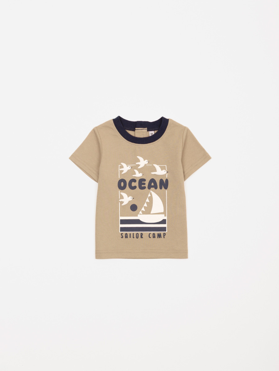 Votre bambin passe en mode été avec cet ensemble pour bébé-garçon au thème "Ocean". On aime son short rayé à taille élastiquée et son joli tee-shirt illustré au dos boutonné. Le plus ? Les jolis détails en relief de son adorable illustration. Existe en nougat et solitaire.