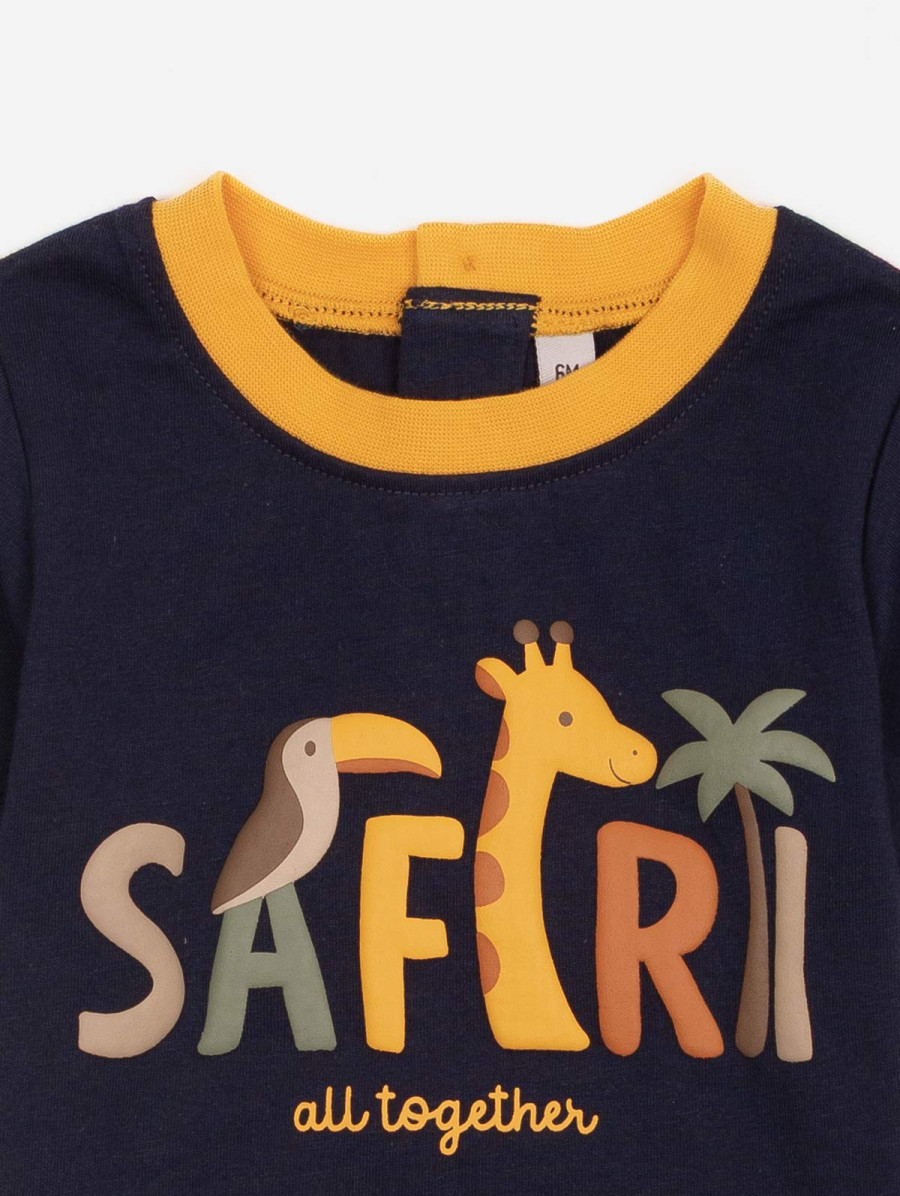 On craque pour cet adorable ensemble pour bébé-garçon au thème safari ! Composé d'un short élastiqué et d'un tee-shirt au dos boutonné, son illustration imprimée en relief fait toute son originalité ! Existe en albâtre et solitaire.