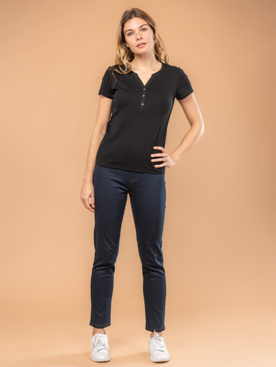 Sobre et intemporel, ce top pour femme au col tunisien et en maille côtelée est un essentiel sur lequel on aime se reposer. Tant avec vos bas unis qu'imprimés, c'est la pièce parfaite pour composer des looks efficaces au quotidien ! Existe en avoine, gaspacho, marine et noir. Longueur totale pour une taille 1 : 62 cm environ. Notre mannequin mesure 1,75m et porte une taille 1.