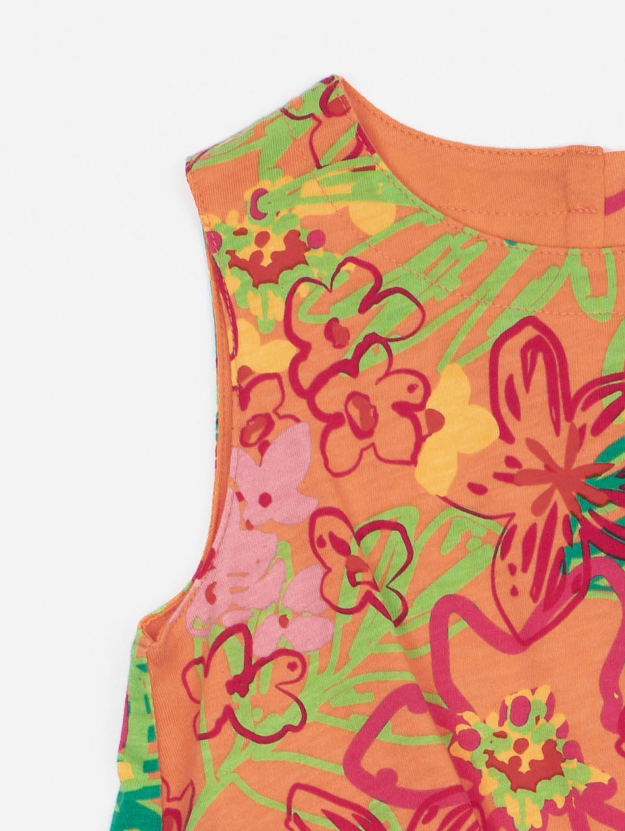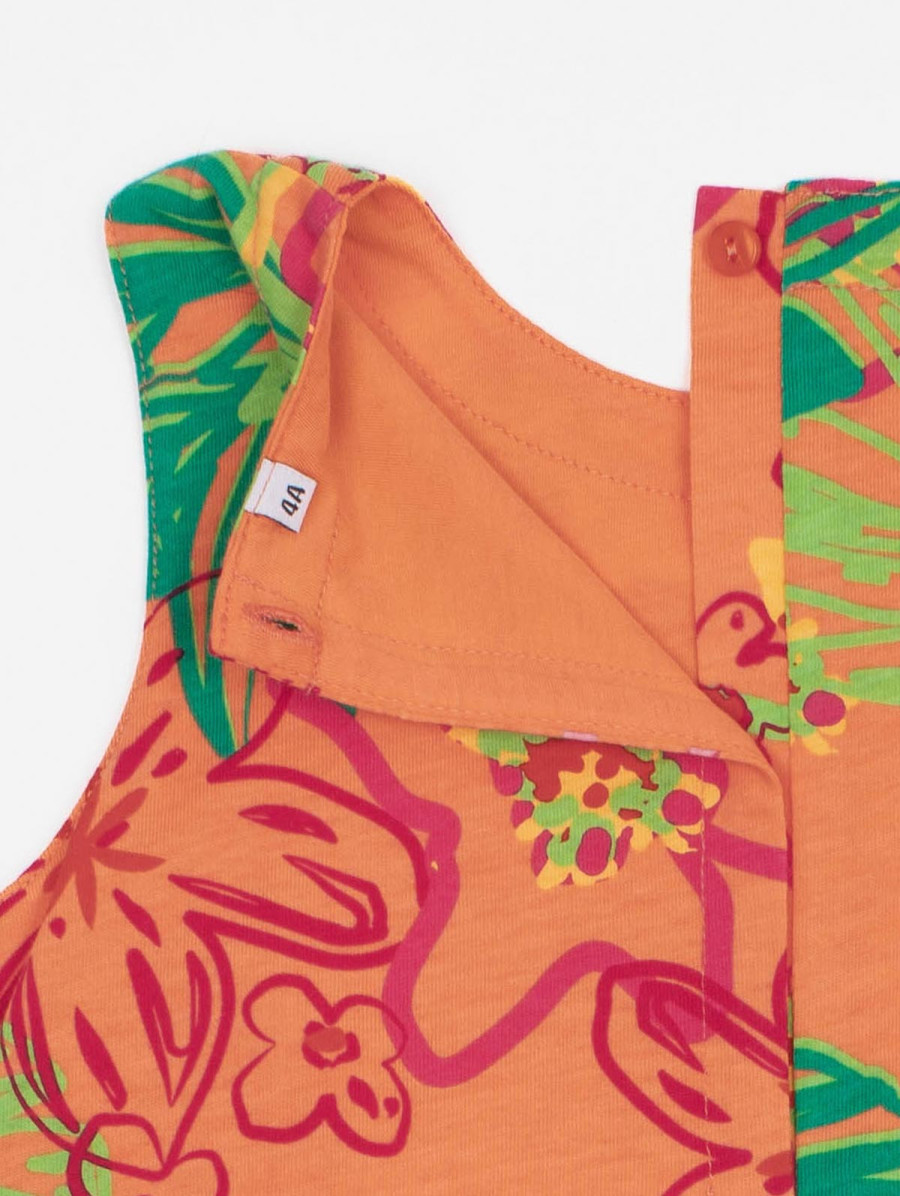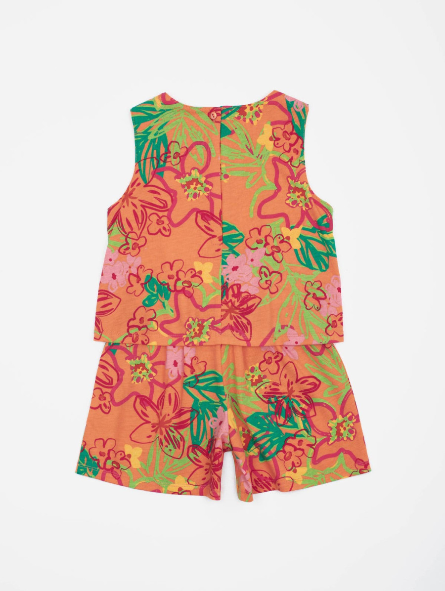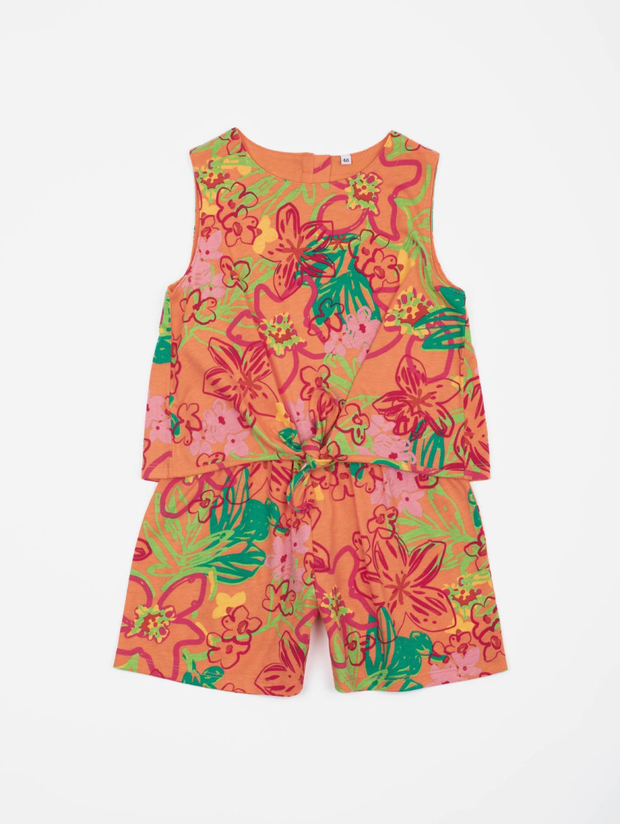 Une touche d'exotisme s'invite dans le dressing des filles avec ce combishort à l'imprimé tropical. Alliant confort et style, sa partie short est dotée d'une taille élastiquée. Pour encore plus de fantaisie, sa partie top est agrémentée de jolis boutons sur les épaules et d'un jolis bas noué. Un look 2-en-1 parfait pour l'été ! Existe en menthe et orangine.