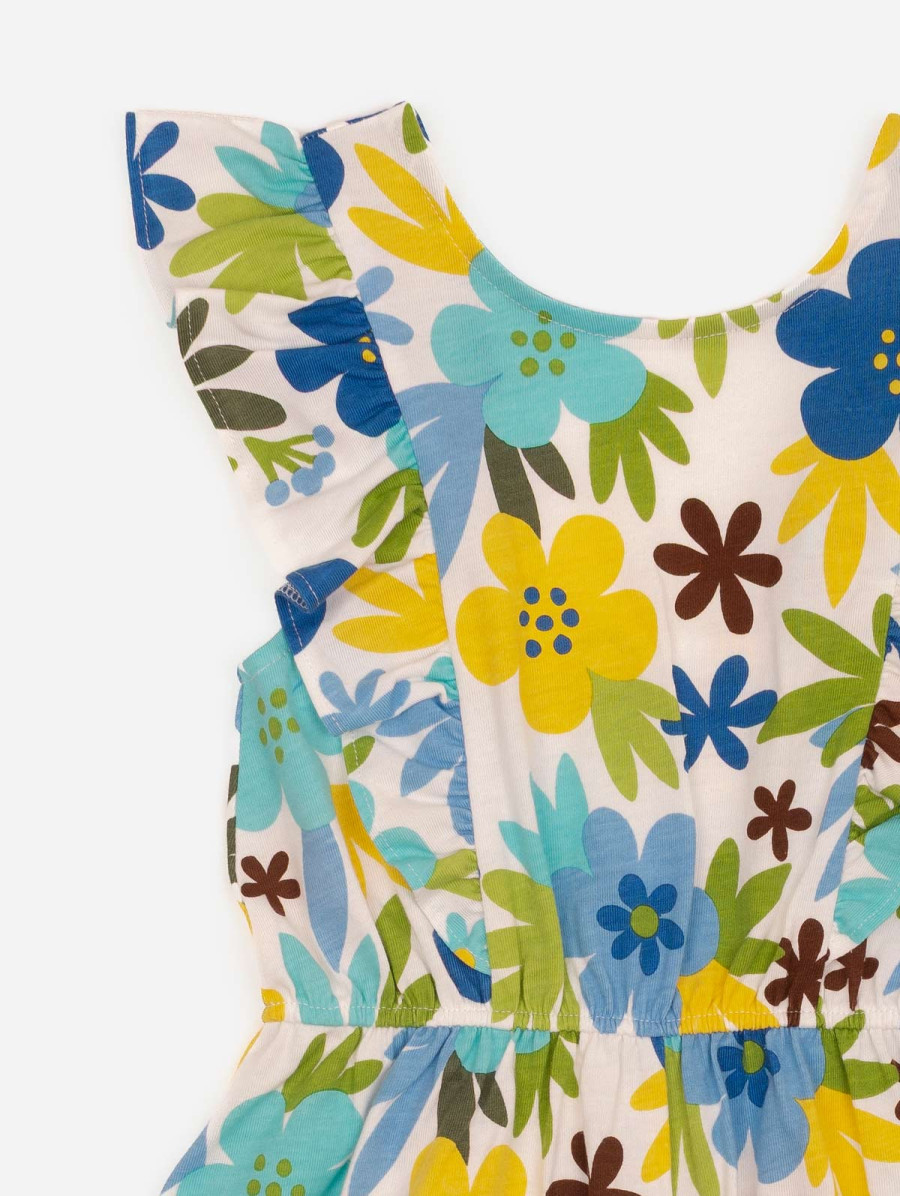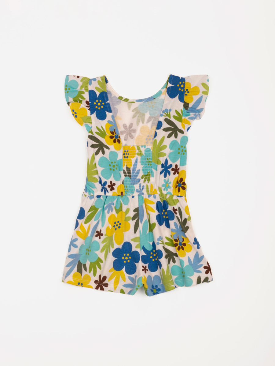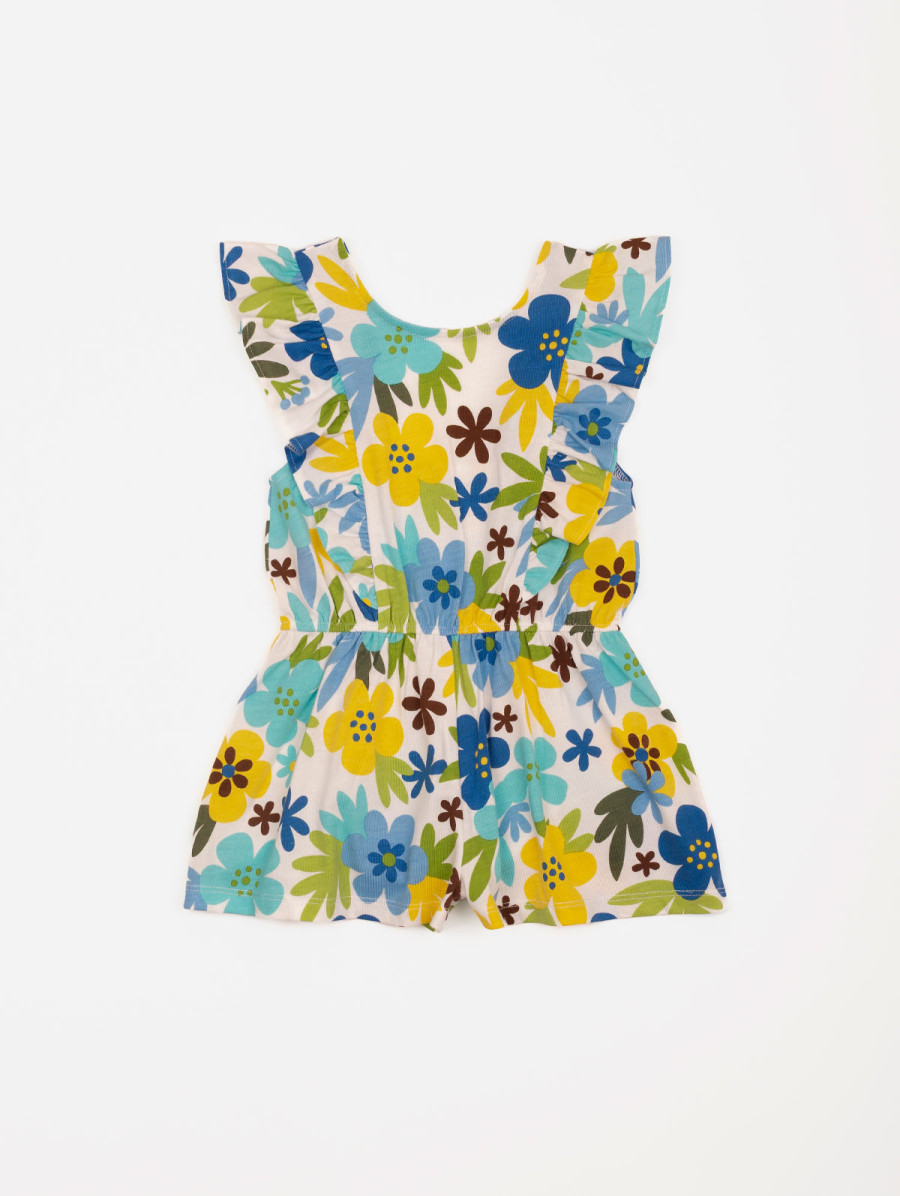 La nature s'invite dans le dressing des filles avec ce combishort à l'imprimé fleurs. Fort des ses couleurs estivales, il est doté de manches à volants, d'un dos smocké et d'une taille élastiquée pour encore plus de confort ! Existe en bleu royal et tangerine.