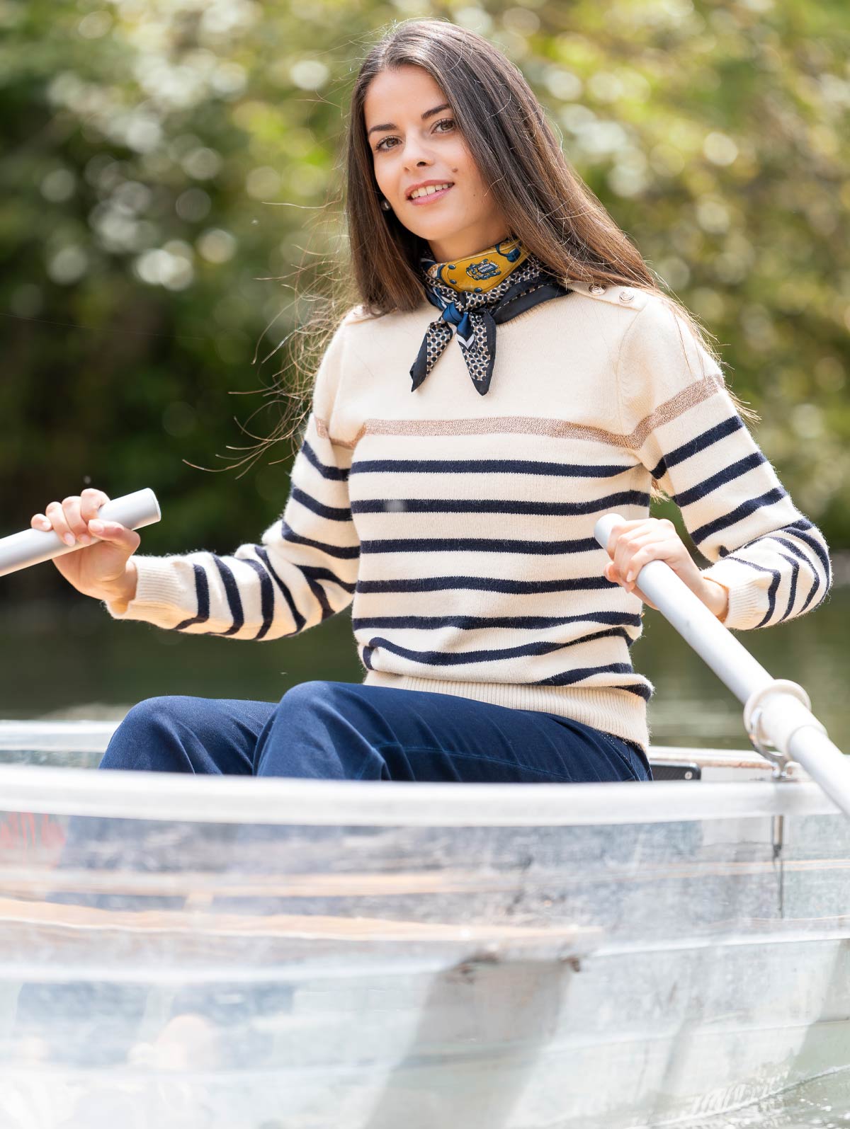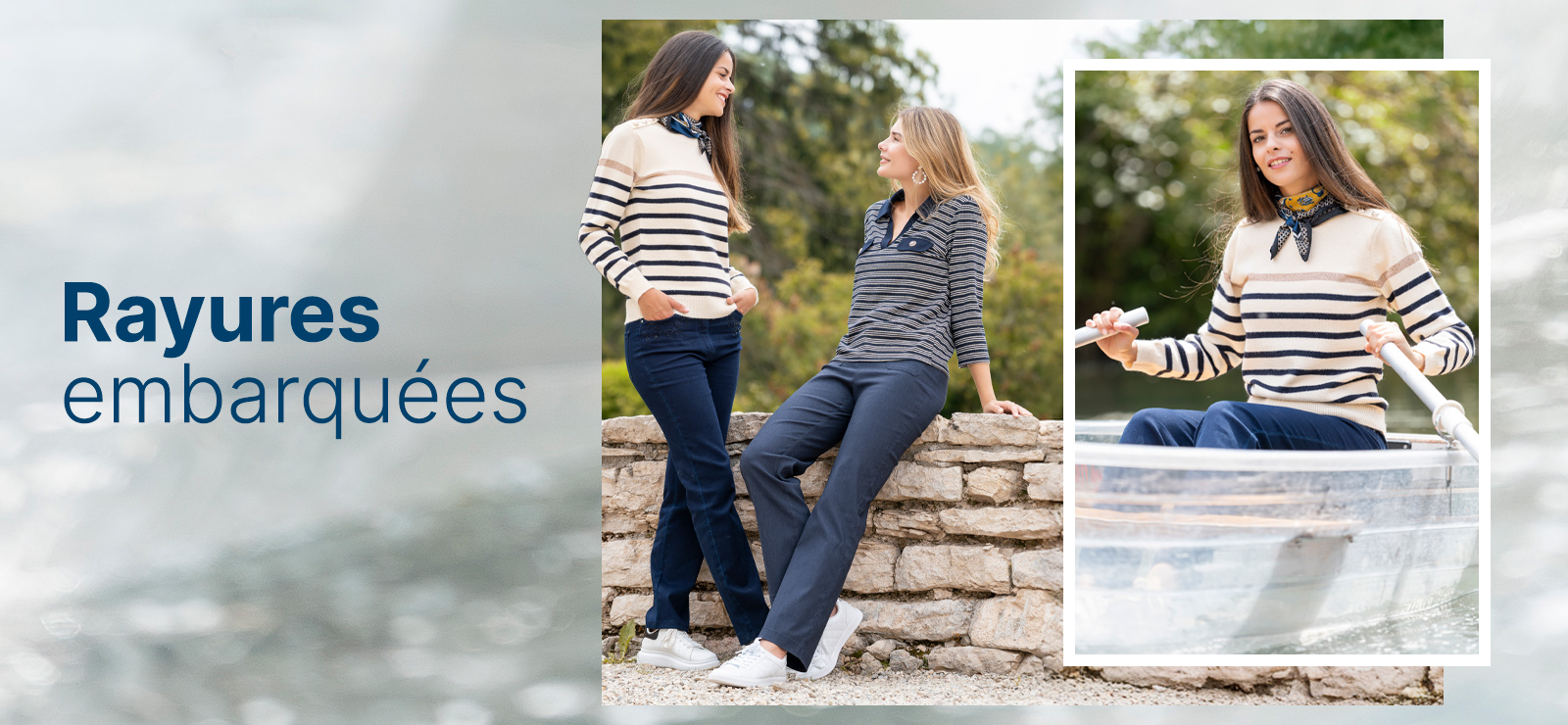 Entre terre et mer, les rayures nous invitent au voyage. Des pièces faciles à porter, élégantes et confortables. Un style qui nous ressemble : féminin, chic et intemporel.