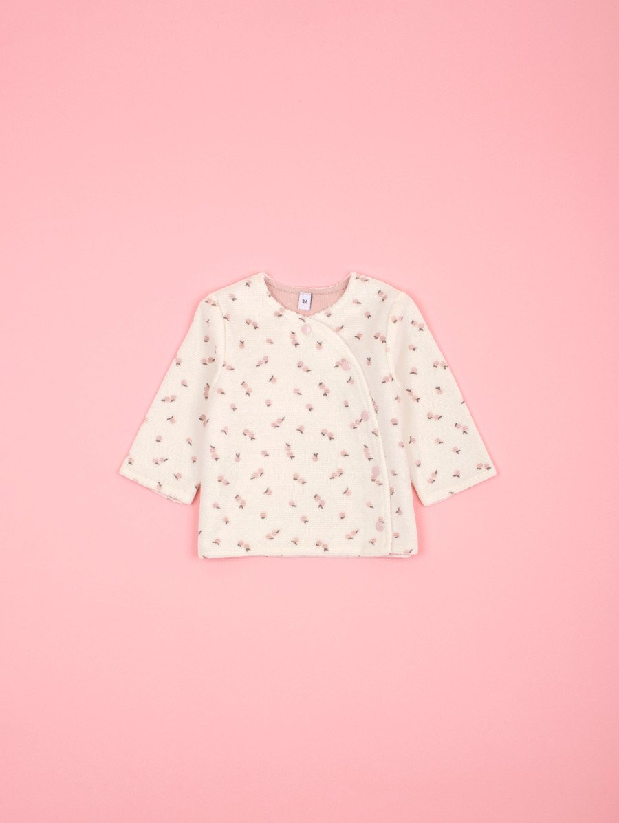 Aussi adorable que confortable, cet ensemble pour bébé-fille en velours et à l'imprimé fantaisie est idéal pour la saison. On aime l'originalité de son cardigan à la découpe asymétrique, qui se ferme à l’avant par des boutons-pression. Le pantalon uni assorti, à taille élastiquée, complète en douceur ce duo plein de charme. Existe en albâtre et rose thé.