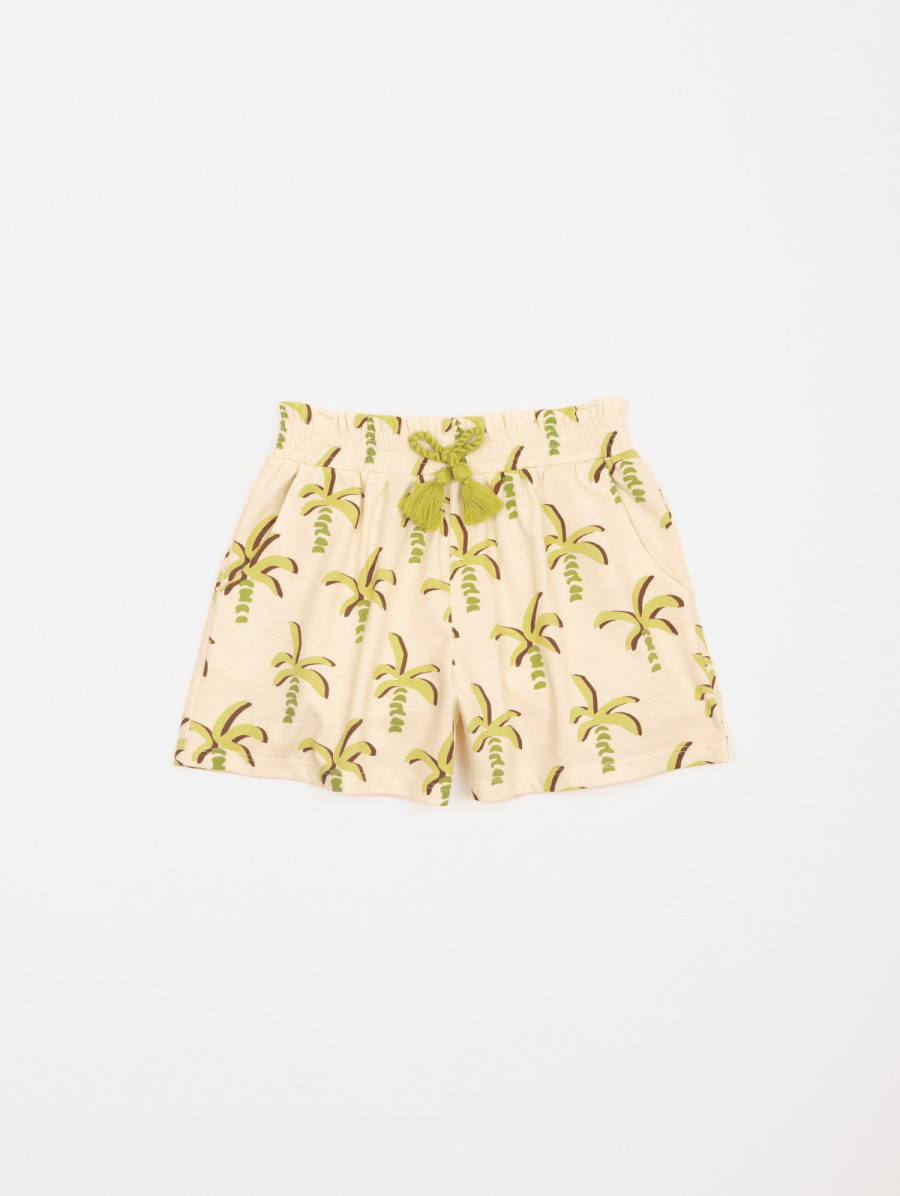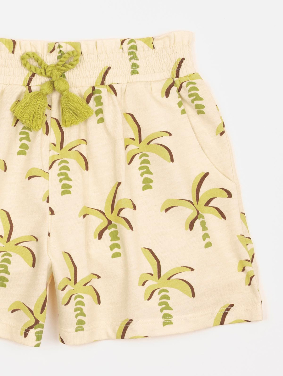 Parfait pour l'été, ce short pour fille à l'imprimé palmiers deviendra vite un essentiel ! Doté de deux vraies poches pratiques à l'avant, il nous séduit grâce à sa ceinture smockée et son joli nœud fantaisie à pompons. Existe en ambre et vert pré.