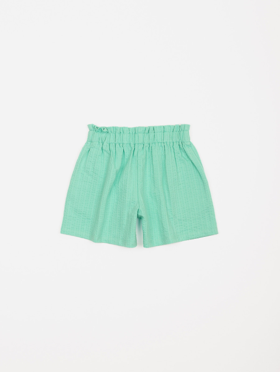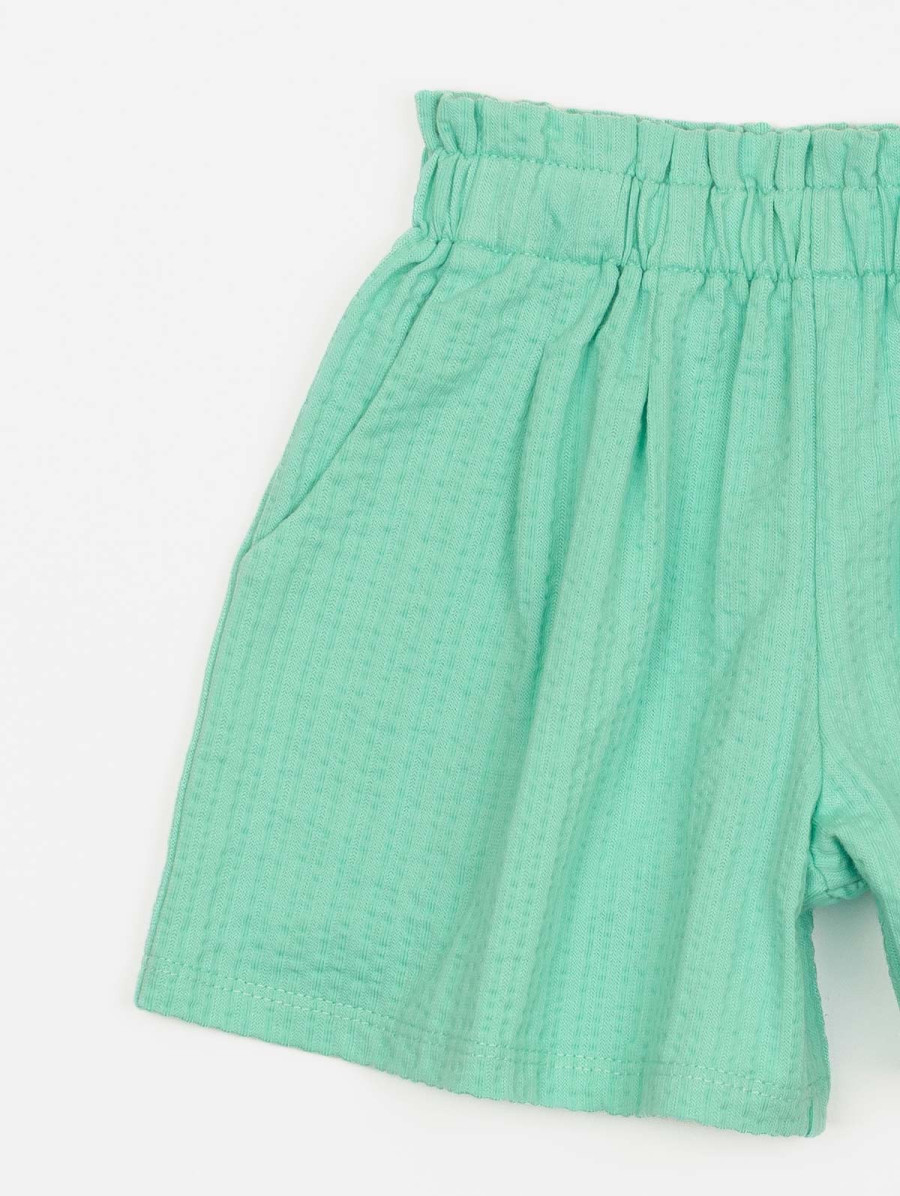 Parfait pour l'été, ce short pour fille en maille gauffrée complète à merveille un top uni ou imprimé. On aime son tissu texturé, sa ceinture élastiquée et ses deux vraies poches pratiques à l'avant. Existe en agrume et anisette.