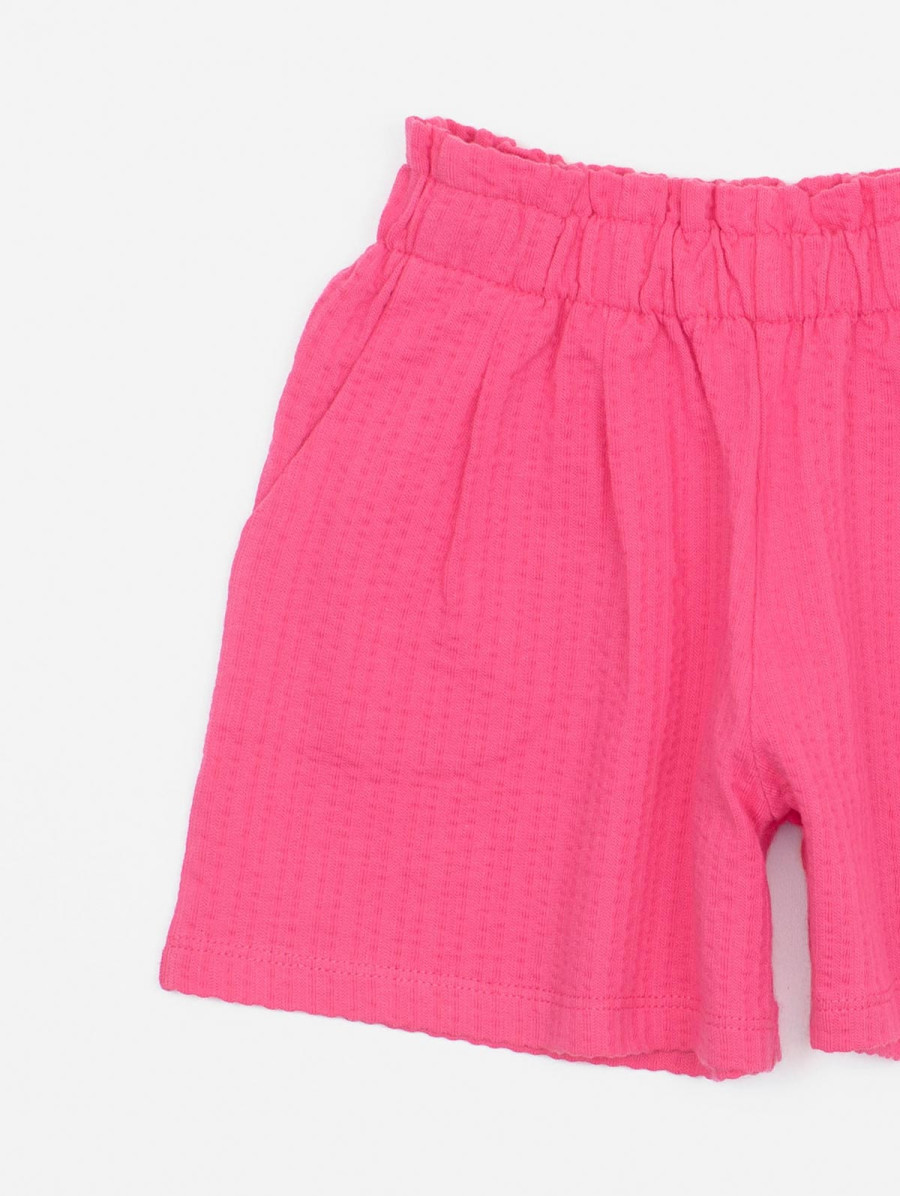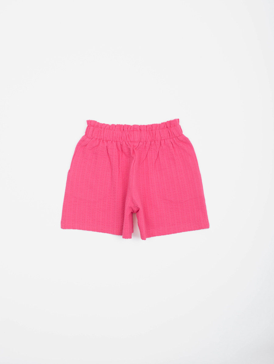 Idéal pour l'été, ce short pour fille en maille gauffrée complète à merveille un top uni ou imprimé. On aime son tissu texturé, sa taille élastiquée et ses deux vraies poches pratiques à l'avant. Existe en fushia et curcuma.