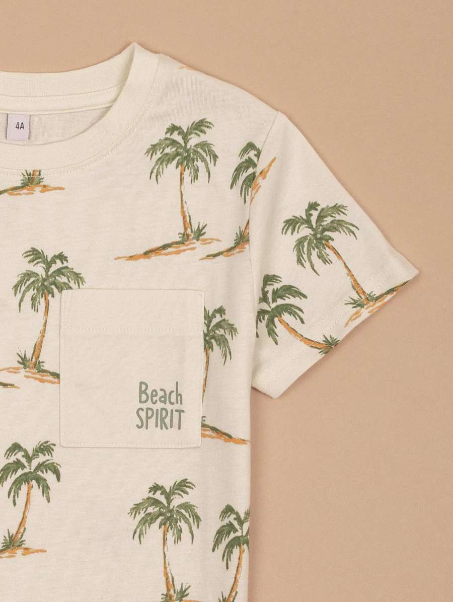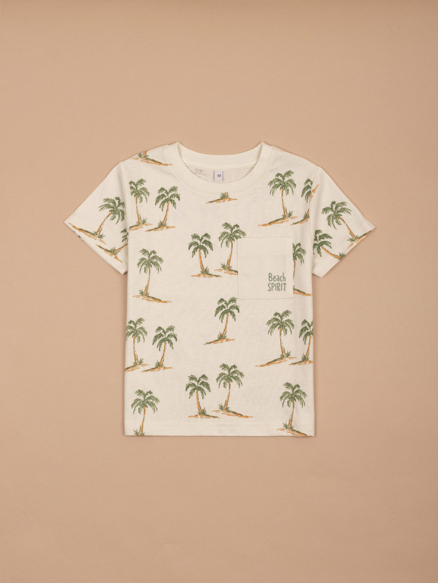 Une envie de vacances s'empare de nous en voyant ce tee-shirt pour garçon à l'imprimé palmiers ! Le plus : sa jolie poche plaquée à l'inscription "Beach Spirit" ! Existe en châtaigne et salicorne.