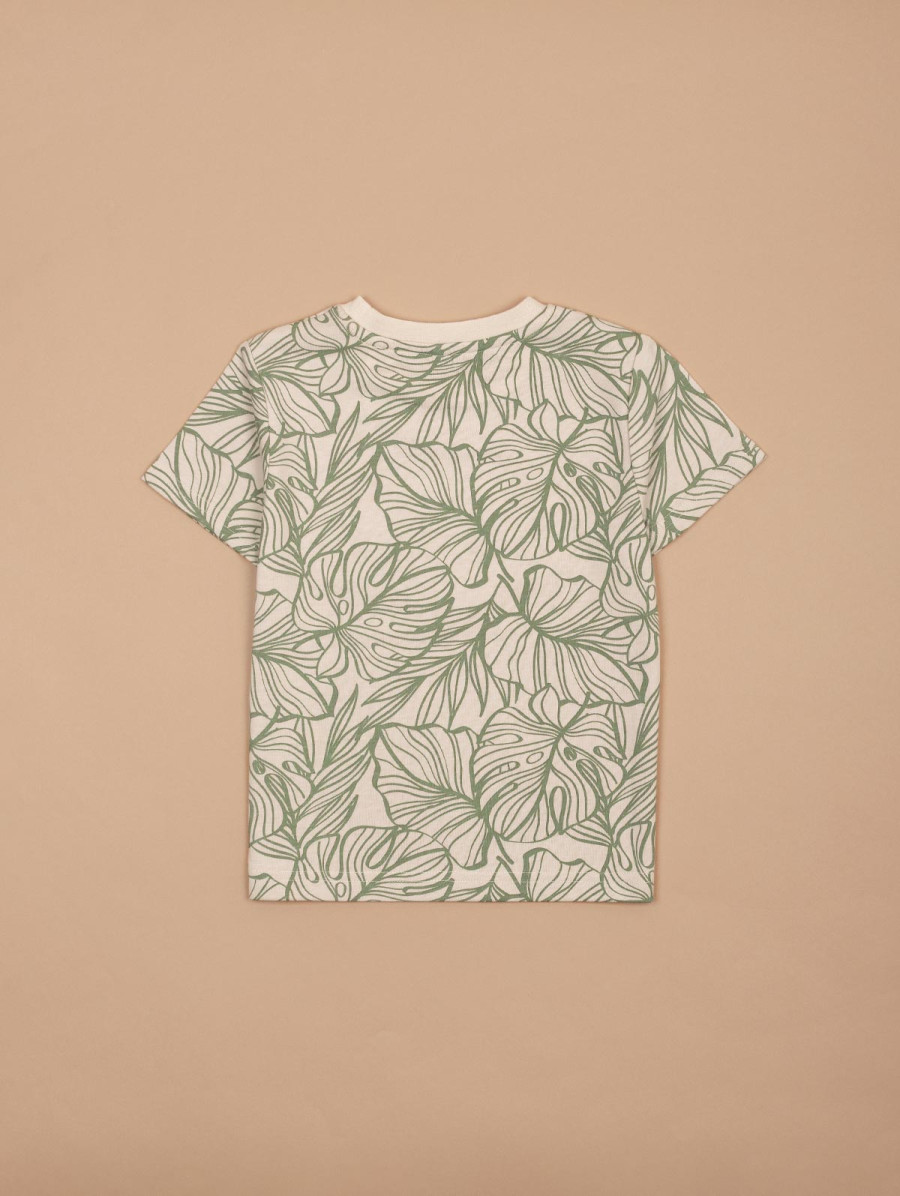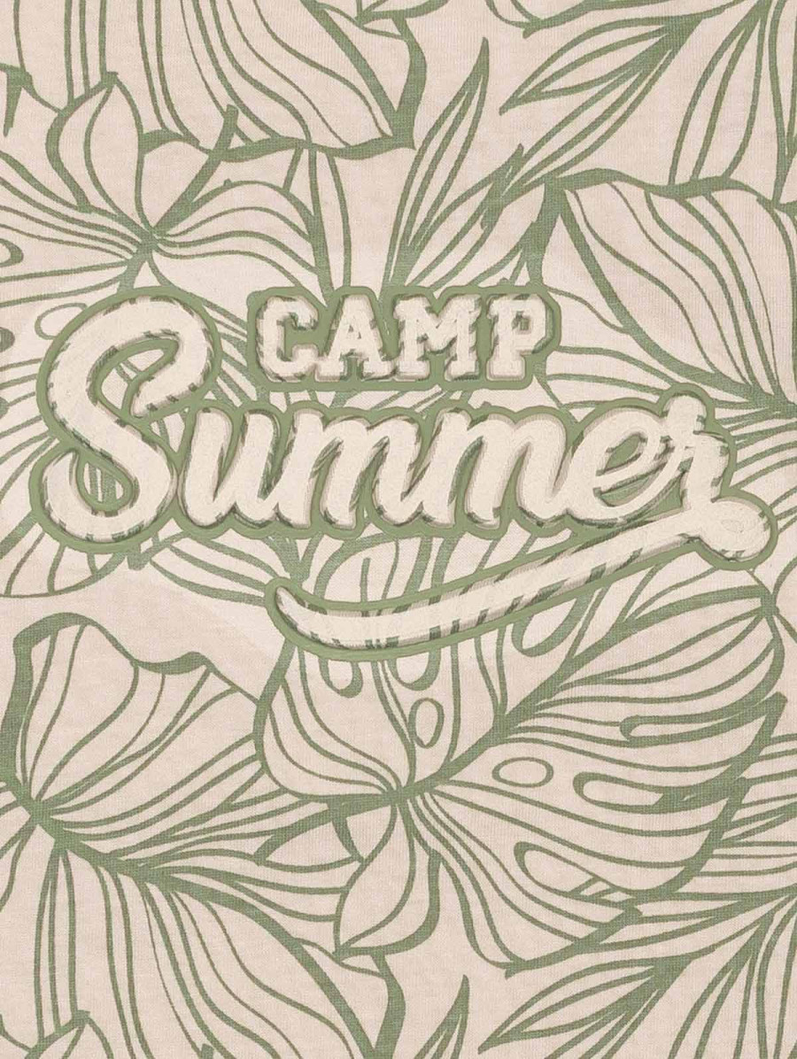 Ce tee-shirt pour garçon à l'imprimé tropical est parfait pour l'été ! Le plus : sa jolie inscription "Camp Summer" en relief pour encore plus de fun ! Existe en bleu de chine et salicorne.