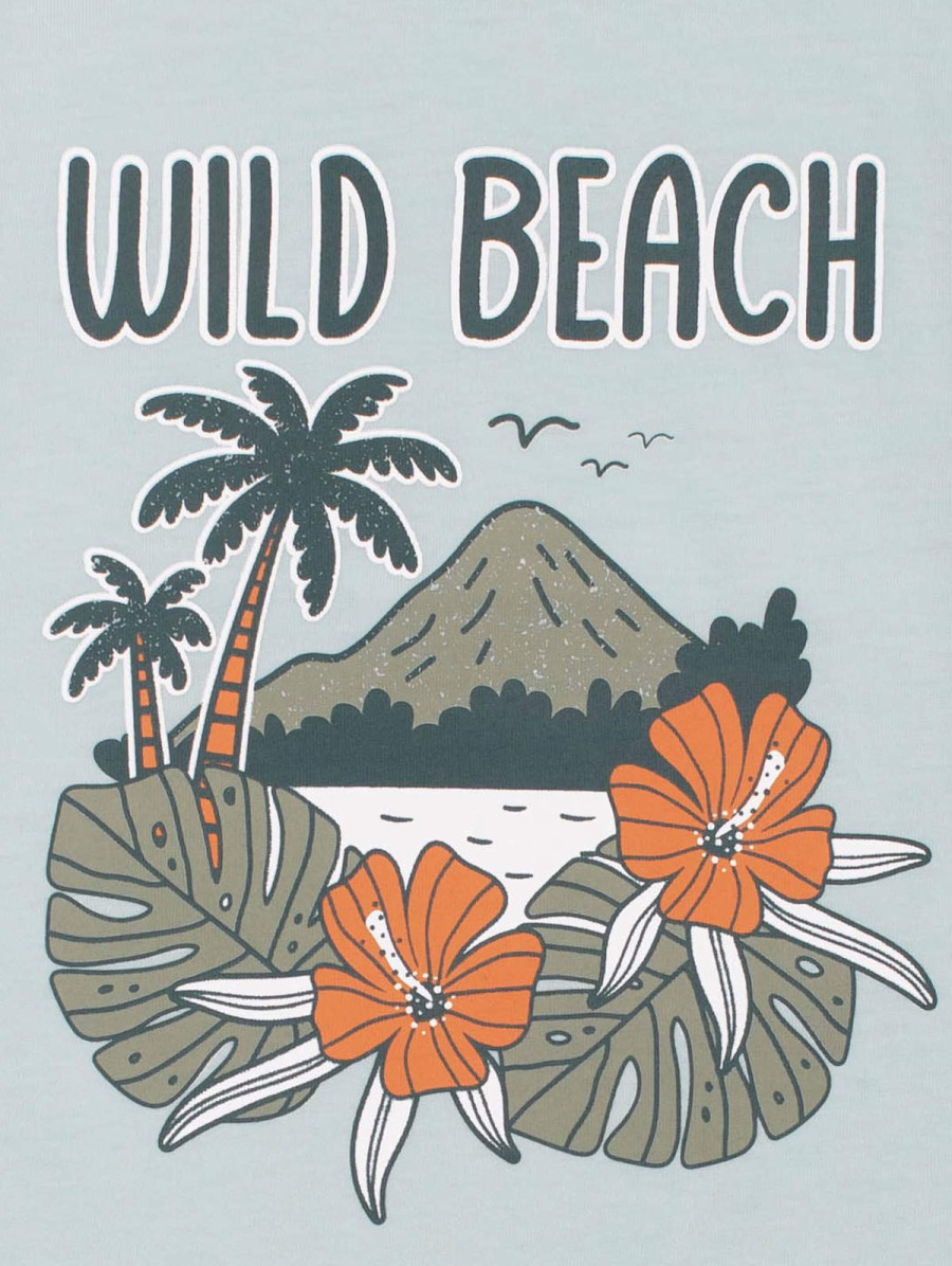 Un air de vacances s'invite dans le dressing des garçons avec ce tee-shirt pour garçon à l'imprimé plage. Existe en mangue et rose trémière.