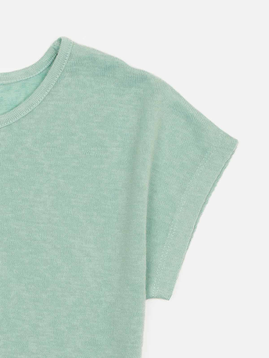 Idéal avec un pantalon imprimé, ce tee-shirt pour fille en maille effet lin est un essentiel sur lequel on aime se reposer. Existe en agrume et glacier.
